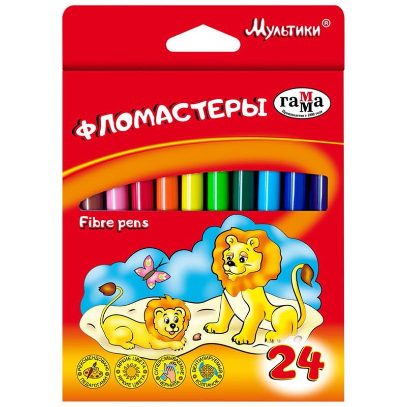 Фломастеры Гамма "Мультики", 24цв., смываемые, картон. упаковка, европодвес