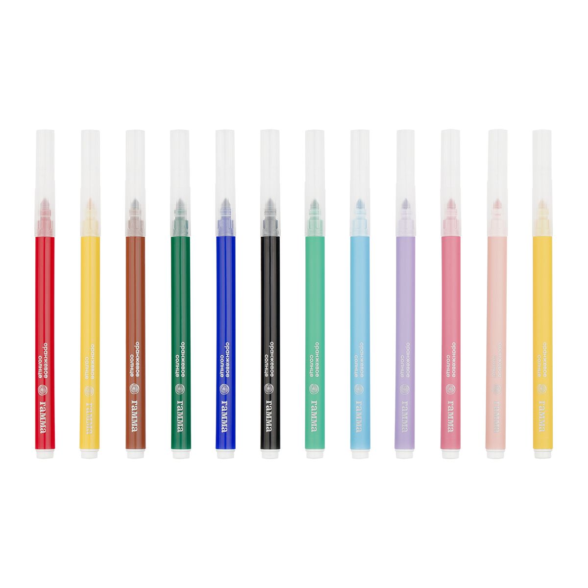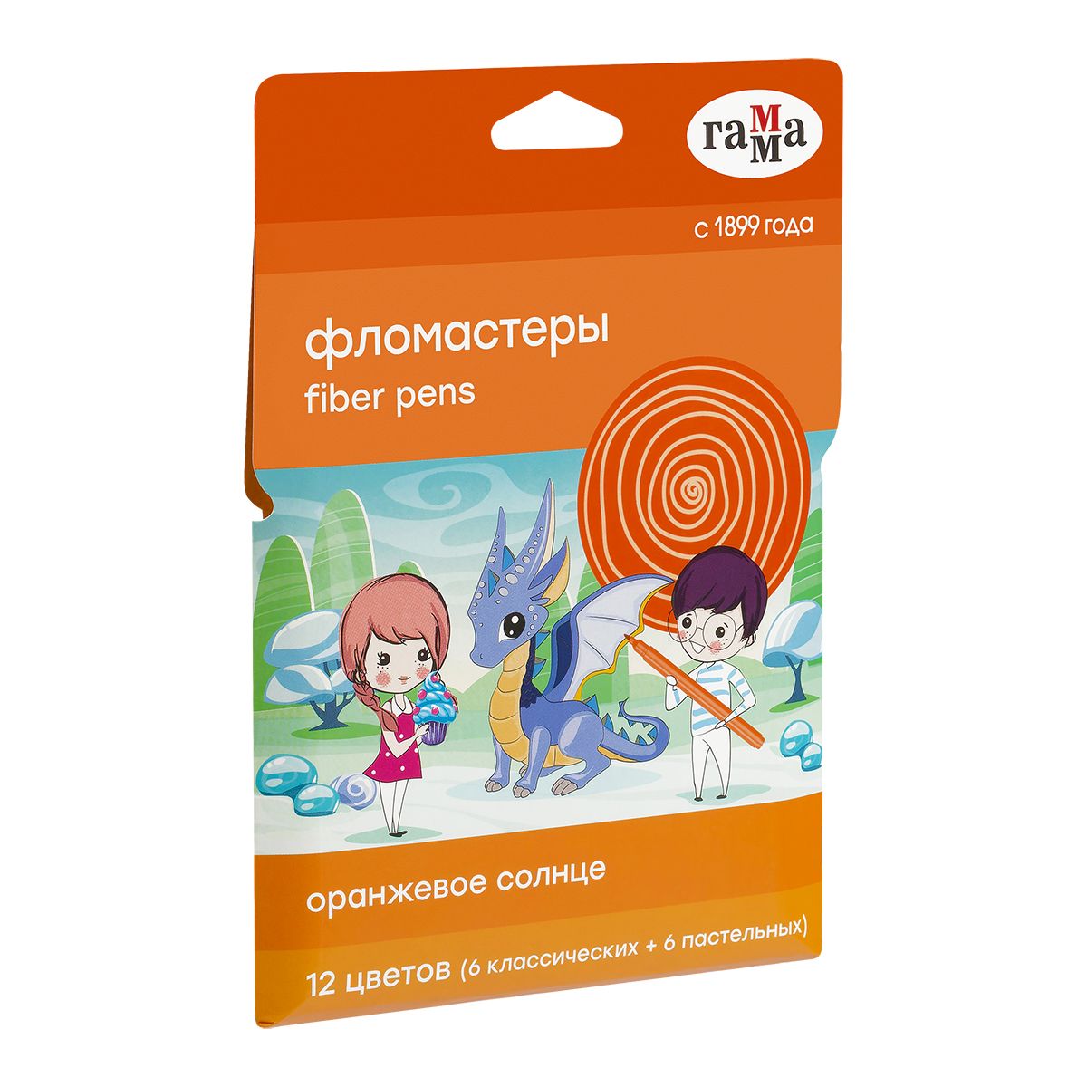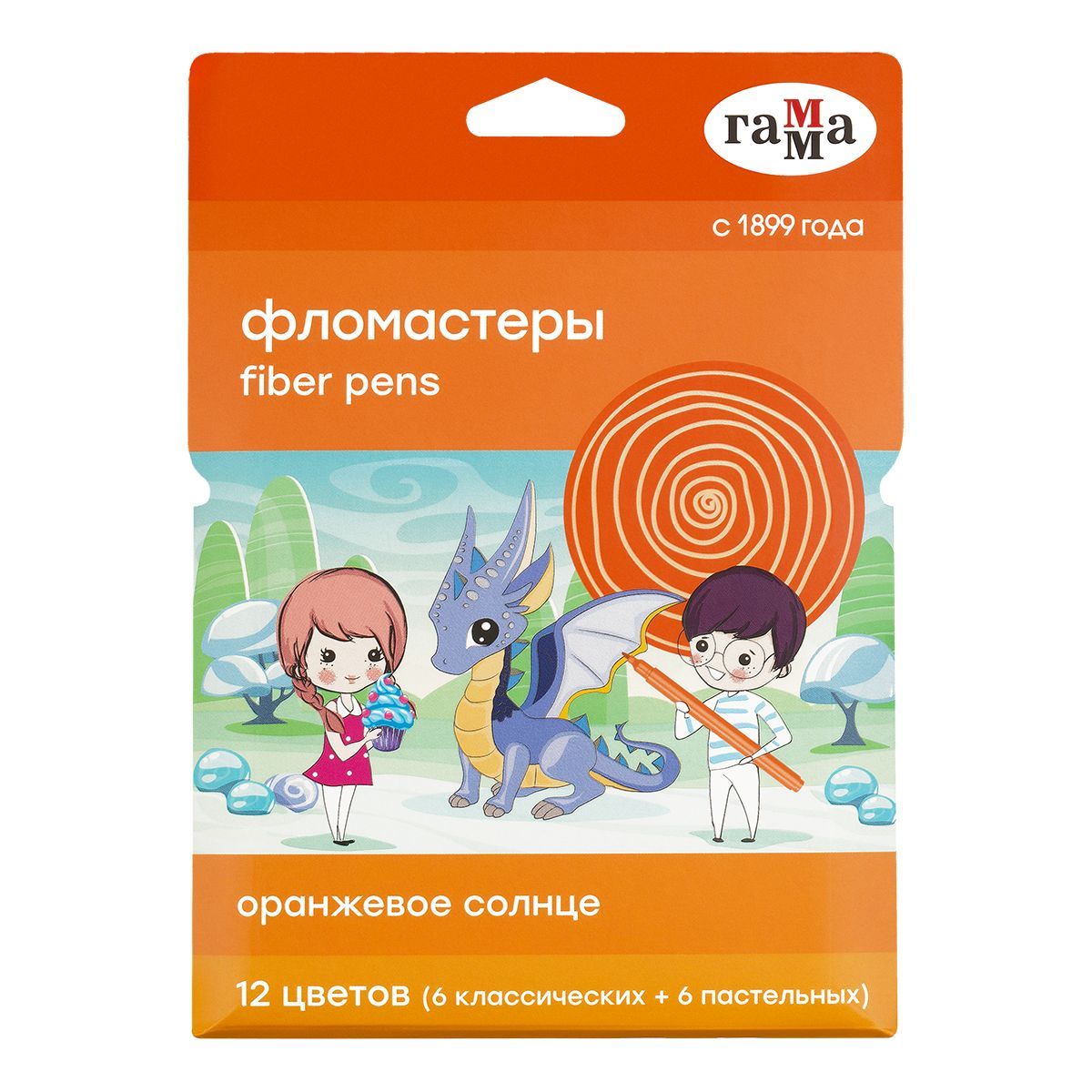 Фломастеры Гамма "Оранжевое солнце", 12цв.(6 обычных + 6 пастельных цветов), 12шт., смываемые, картон. упаковка, европодвес