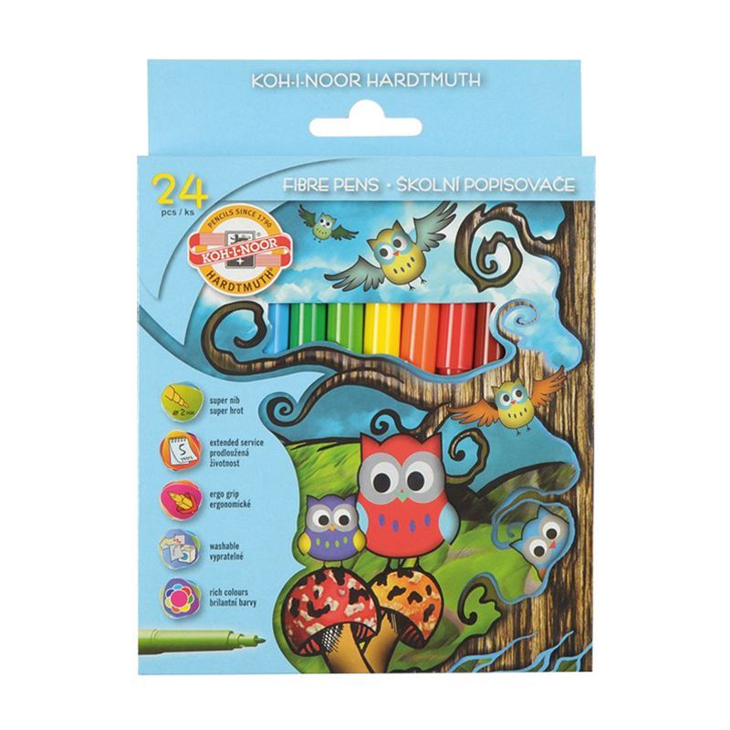 Фломастеры Koh-I-Noor "Owls", 24цв., трехгранные, смываемые, картон, европодвес