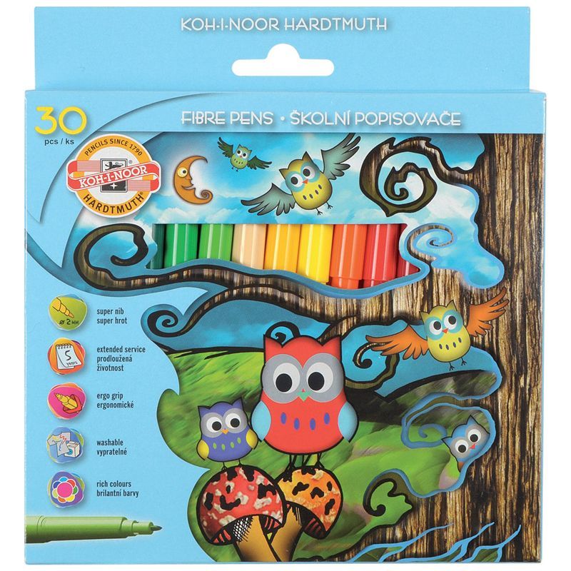 Фломастеры Koh-I-Noor "Owls", 30цв., трехгранные, смываемые, картон, европодвес