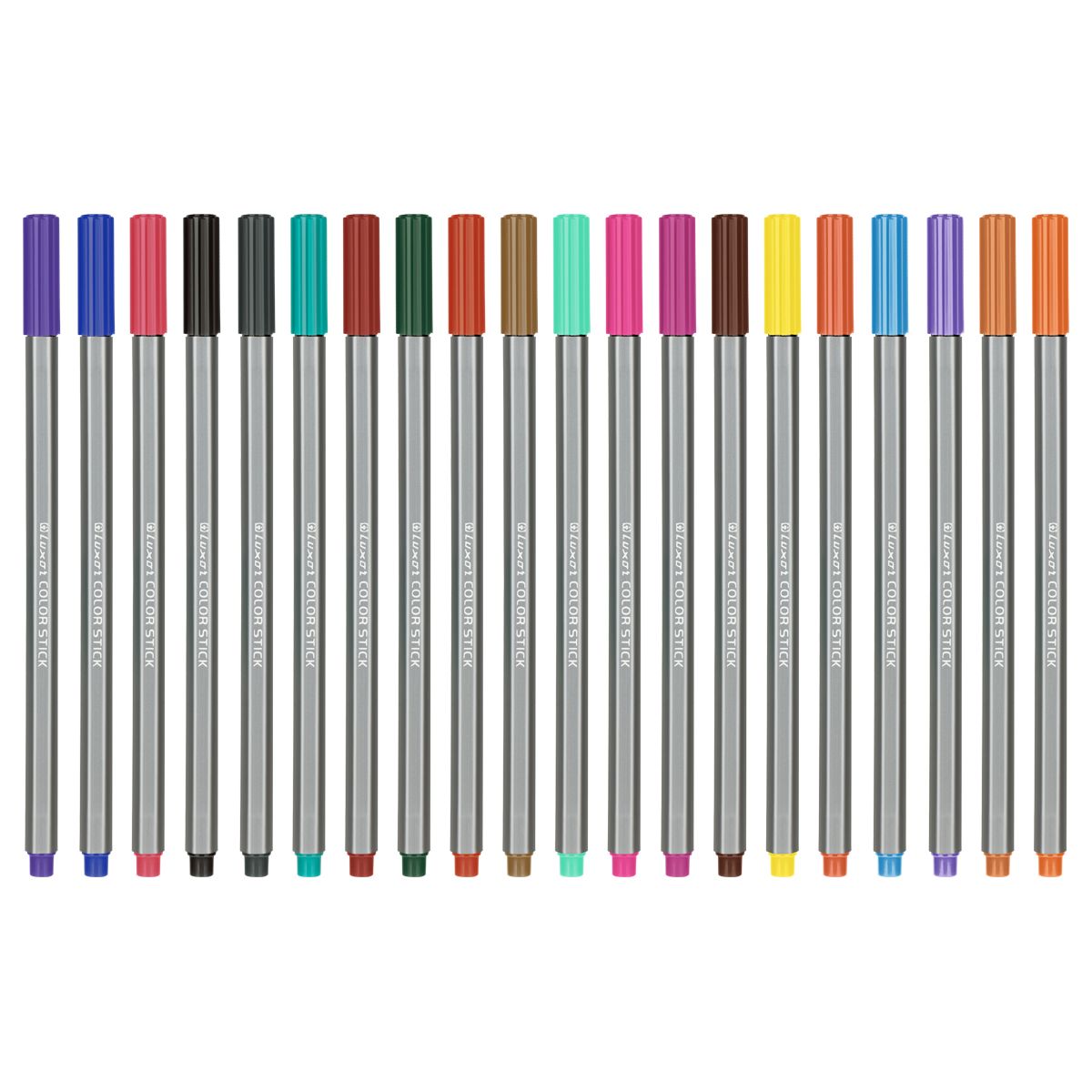 Фломастеры Color Stick имеют специальное строение пишущего узла, который при сильном нажатии не деформируется и не вдавливается. Чернила на водной основе легко отстирываются с одежды и смываются с рук водой. Фломастеры снабжены безопасным вентилируемым колпачком. Упакованы в пластиковый чехол с европодвесом.