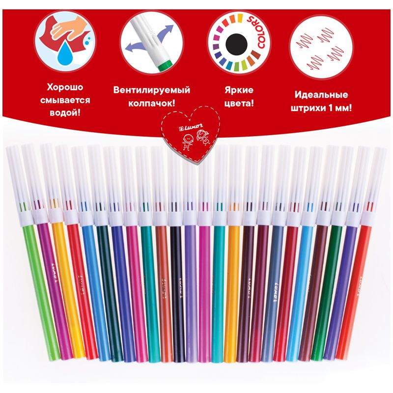 Фломастеры Luxor "Coloring", 24цв., смываемые, пластиковый пенал