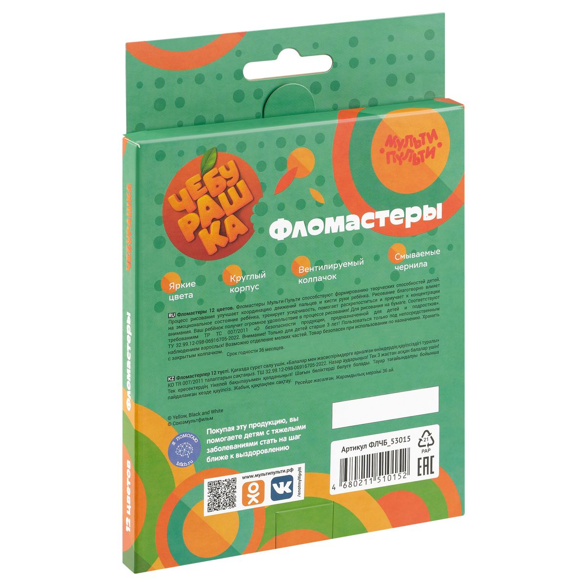 Фломастеры Мульти-Пульти "Чебурашка", 12цв., смываемые, картон, европодвес
