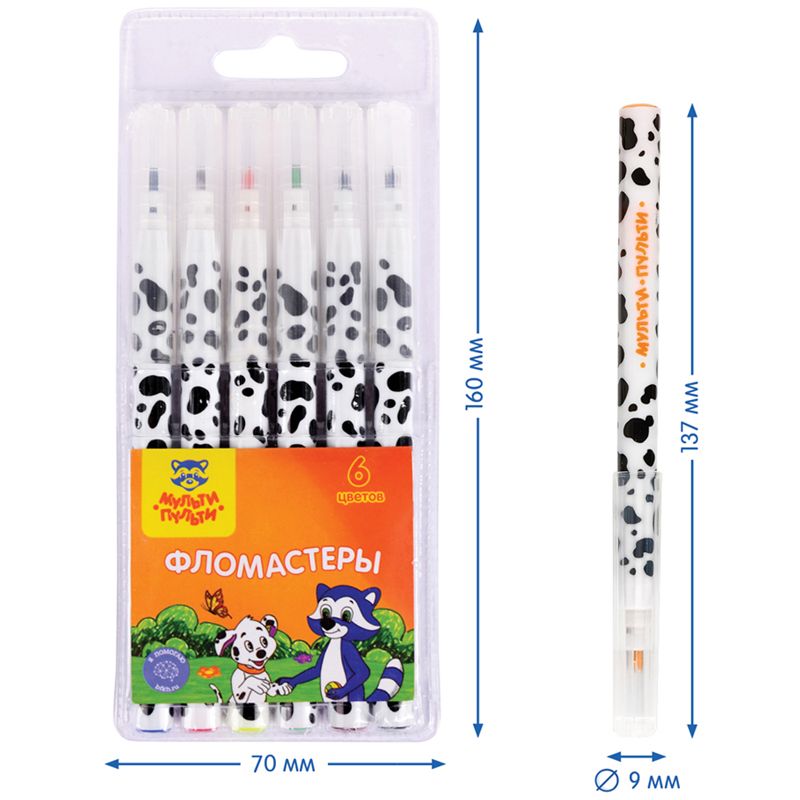 Фломастеры Мульти-Пульти "Енот и далматинцы", 06цв., смываемые, блистер