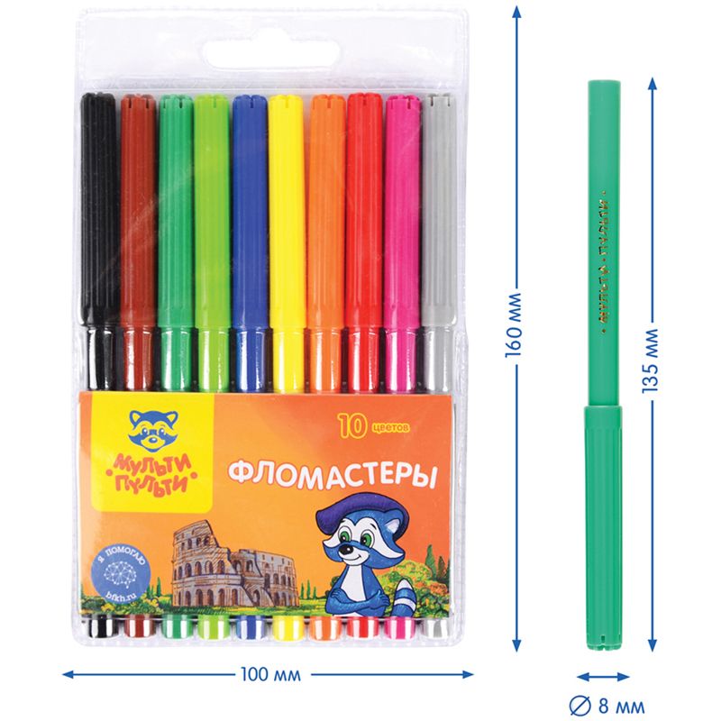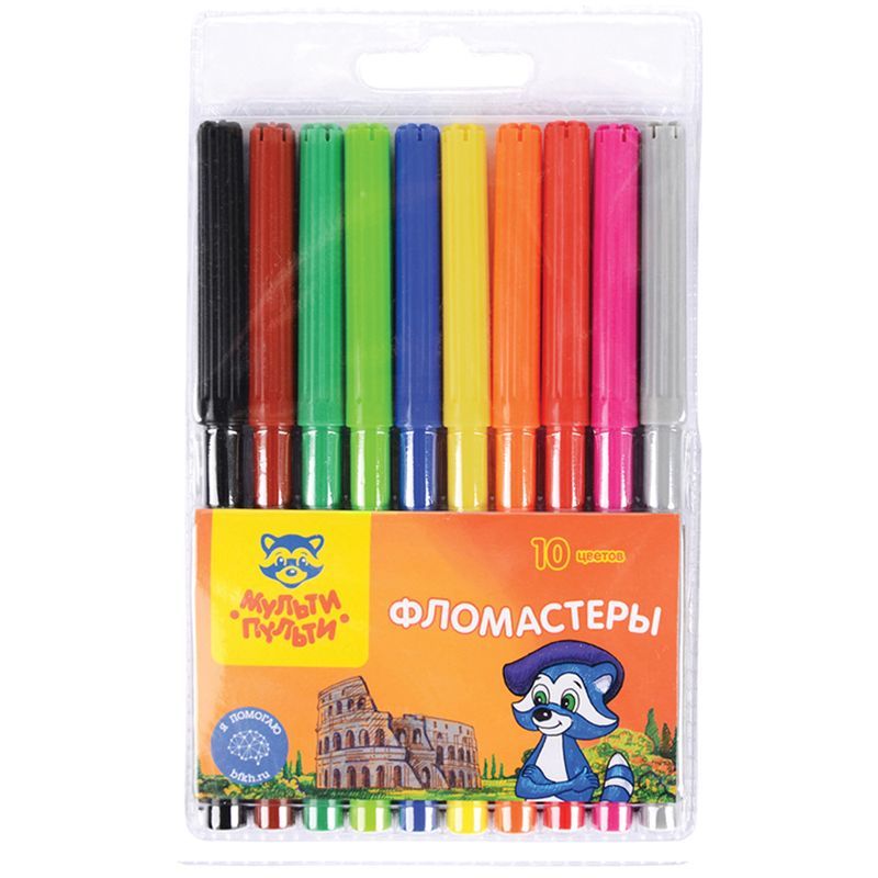 Фломастеры Мульти-Пульти "Енот в Италии", 10цв., смываемые, блистер