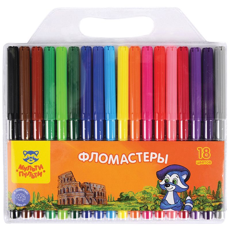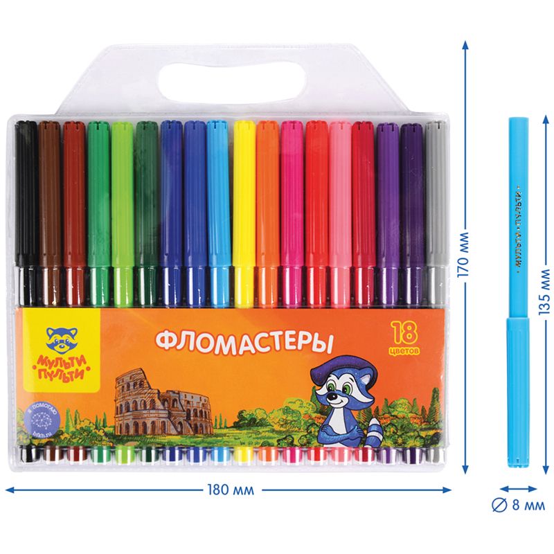 Фломастеры Мульти-Пульти "Енот в Италии", 18цв., смываемые, блистер