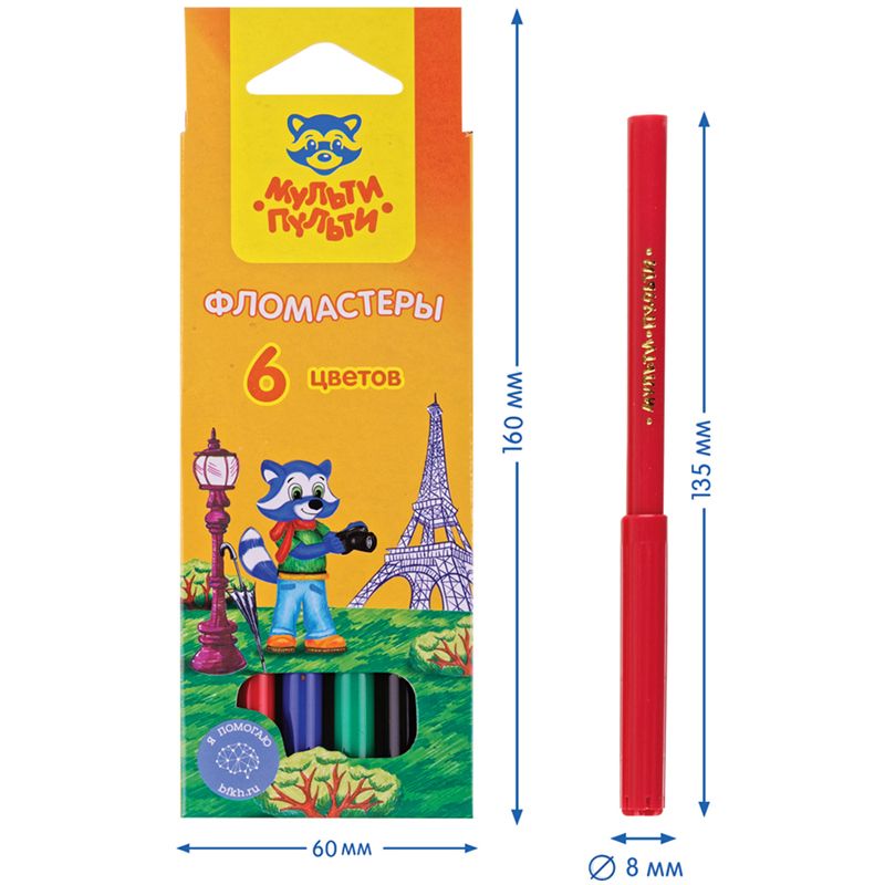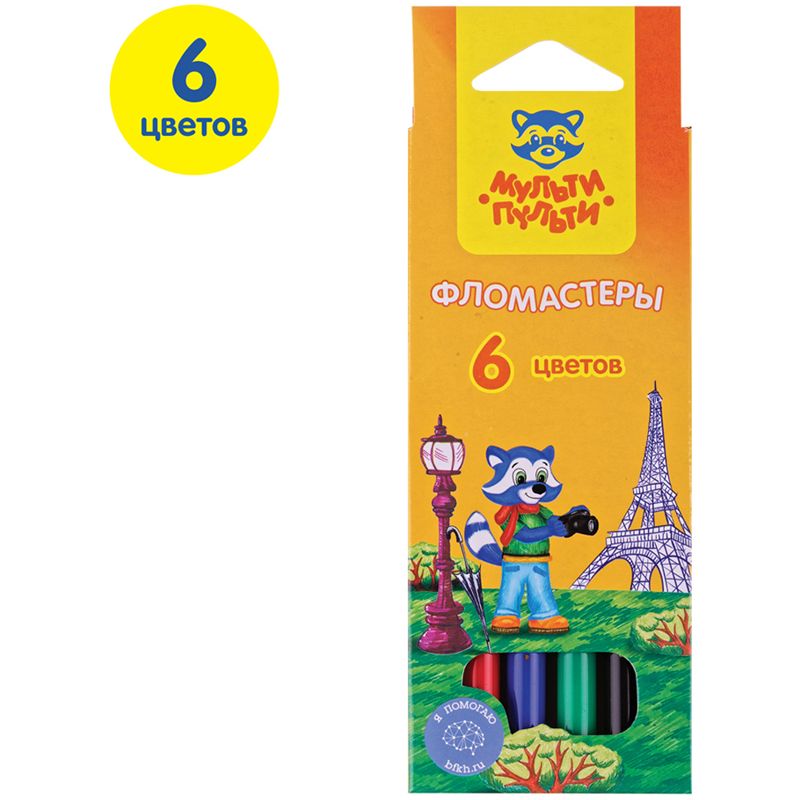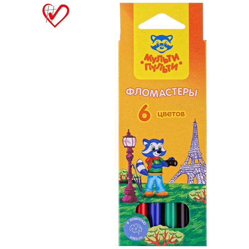 Фломастеры Мульти-Пульти "Енот во Франции", 06цв., смываемые, картон, европодвес