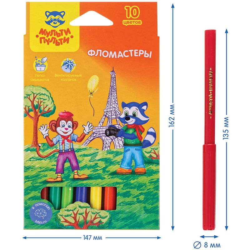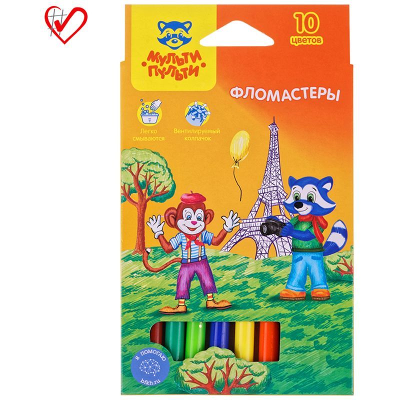 Фломастеры Мульти-Пульти "Енот во Франции", 10цв., смываемые, картон, европодвес