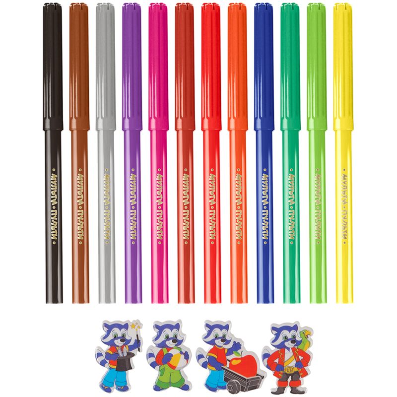Фломастеры Мульти-Пульти "Енот во Франции", 12цв., смываемые, картон, европодвес