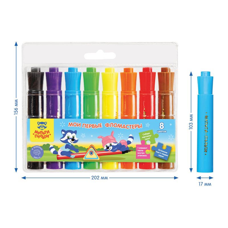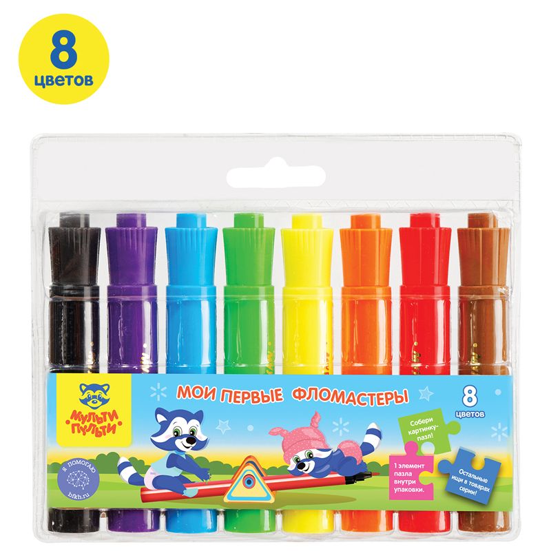 Фломастеры Мульти-Пульти "Мои первые фломастеры", 08цв., утолщенные, короткие, блистер