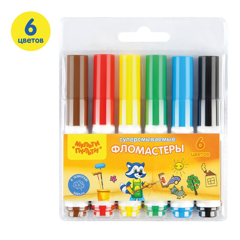 Фломастеры Мульти-Пульти "Приключения Енота", 06цв., утолщенные, суперсмываемые, блистер