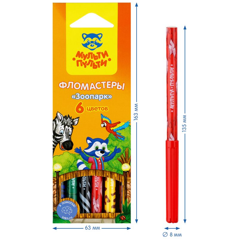 Фломастеры Мульти-Пульти "Зоопарк", 06цв., с печатью, картон