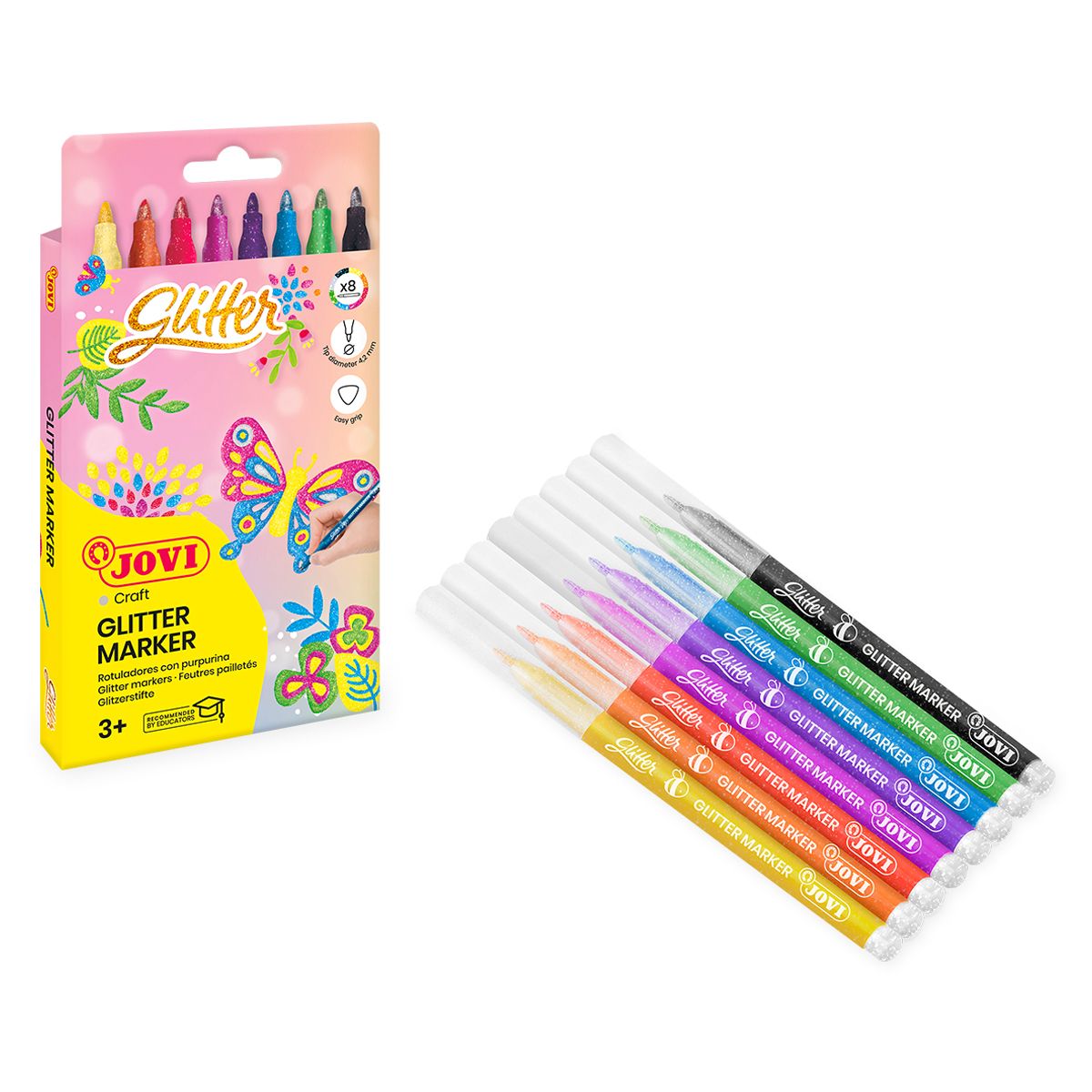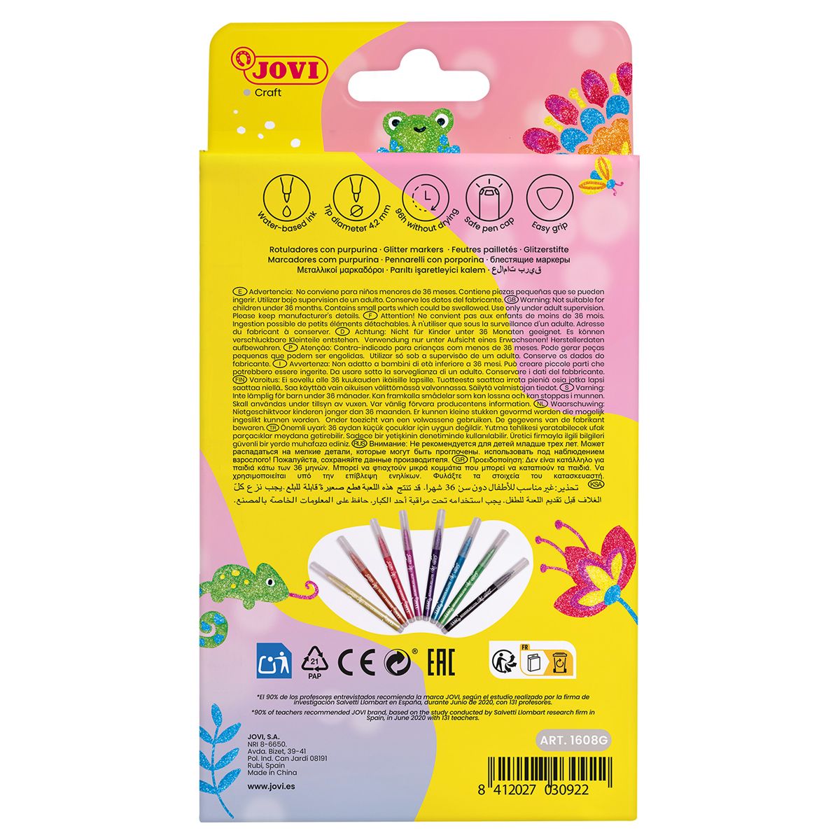 Фломастеры с блестками JOVI "Glitter", 08цв., смываемые, картон, европодвес