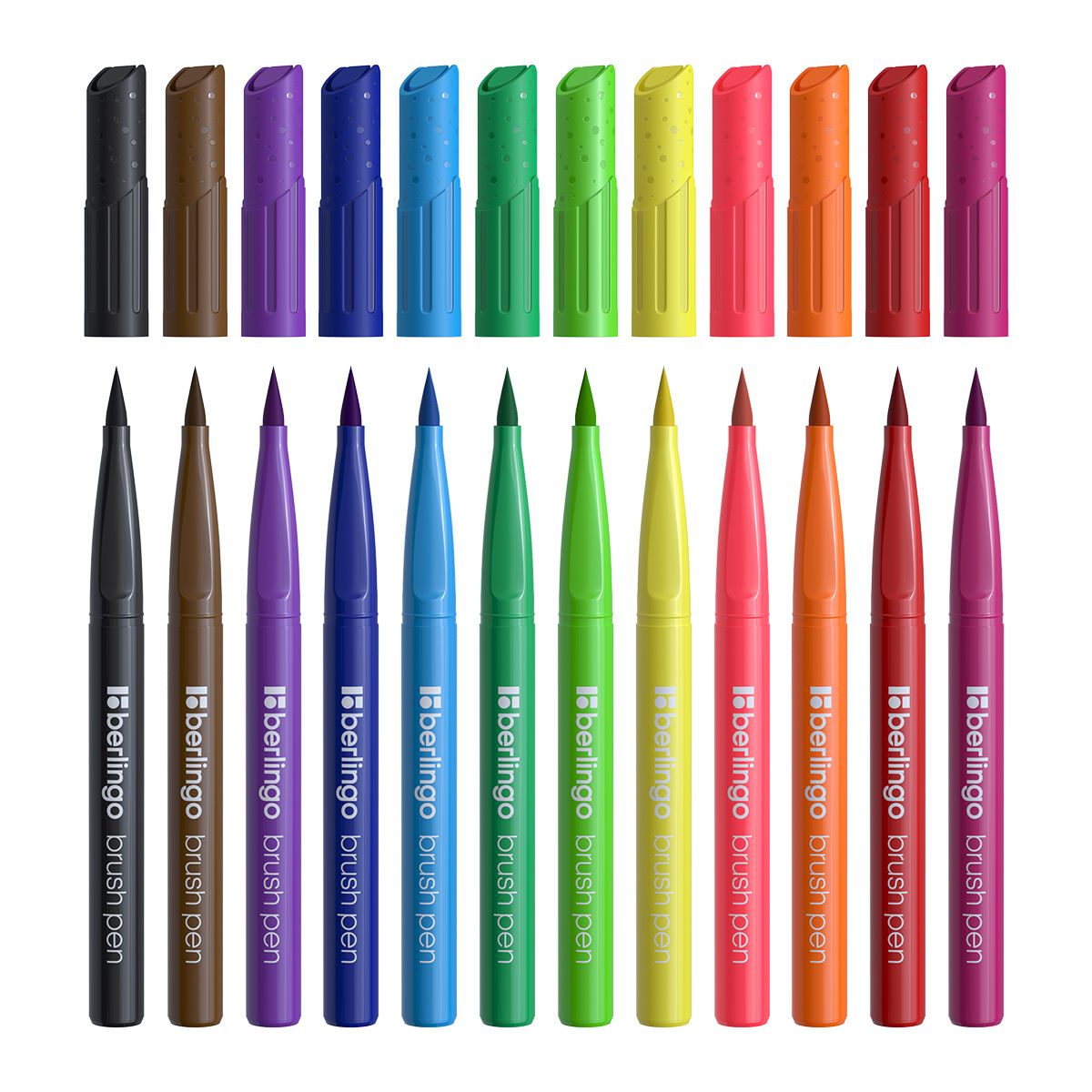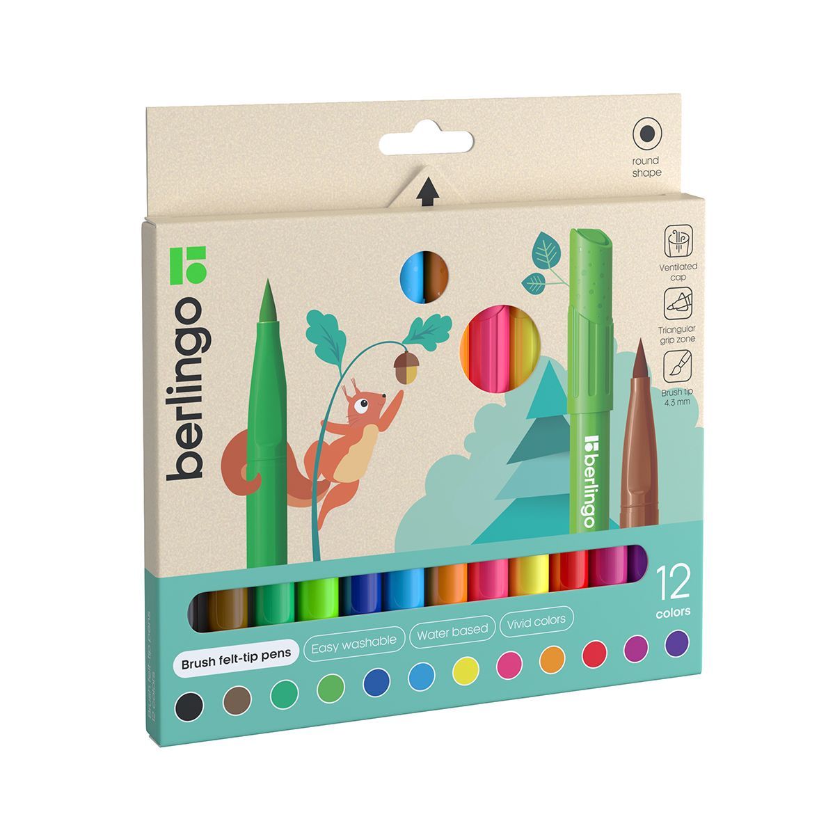 Фломастеры с кистевым пишущим узлом Berlingo "Brush", 12цв., смываемые, картон, европодвес