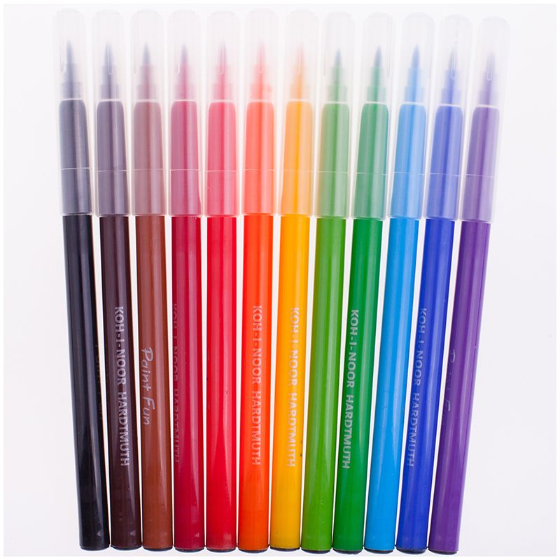 Фломастеры с кистевым пишущим узлом Koh-I-Noor "Brush", 12цв., трехгранные, смываемые, ПВХ, европодвес