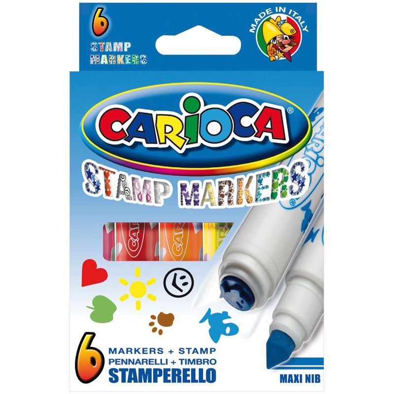 Фломастеры-штампы двусторонние Carioca "Stamp Markers", 06цв., смываемые, картон, европодвес