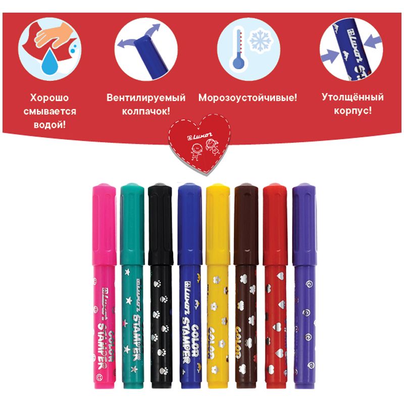 Фломастеры-штампы Luxor "Color Stamper", 08цв., смываемые, картон, европодвес