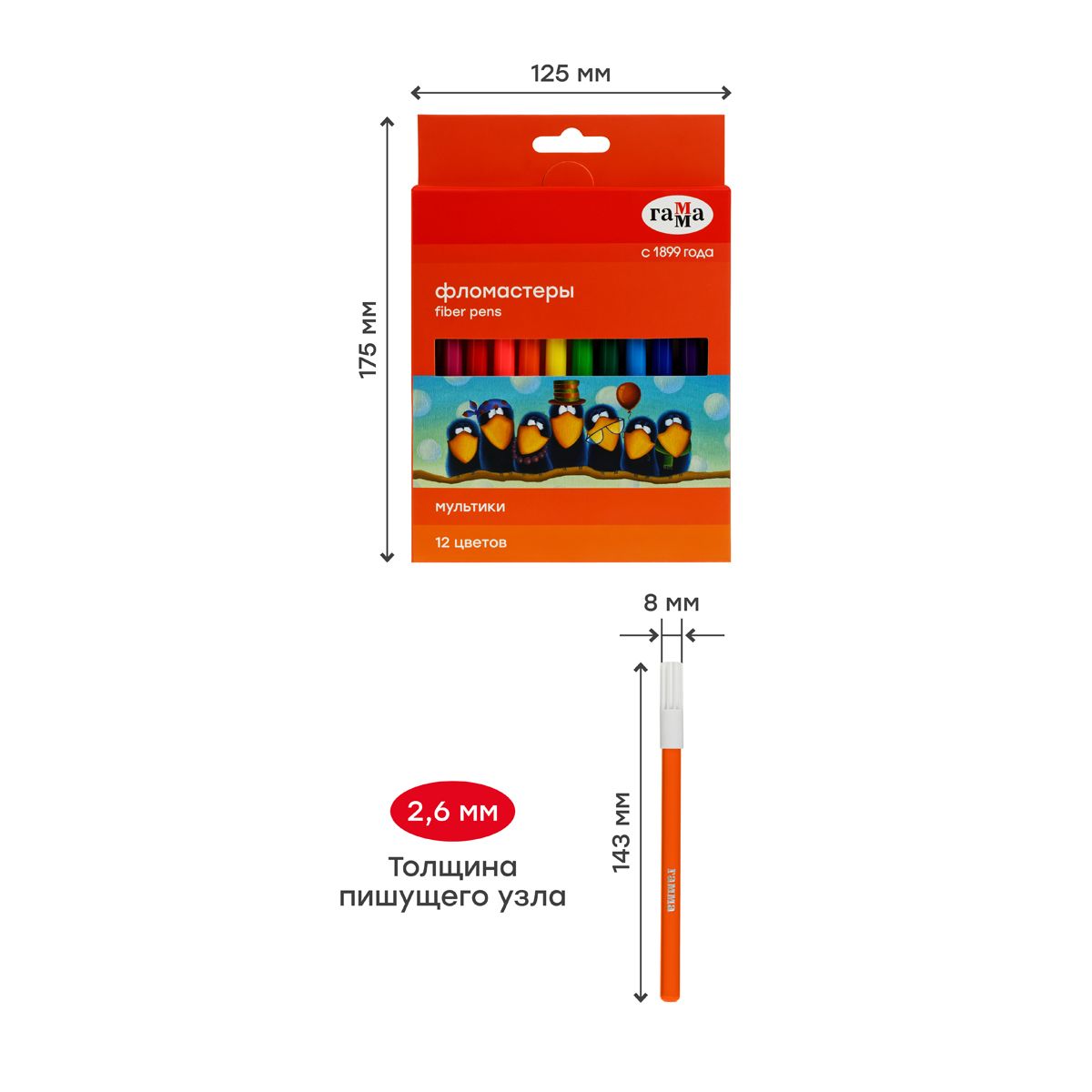 УЦЕНКА - Фломастеры Гамма "Мультики", 12цв., смываемые, картон. упак., европодвес