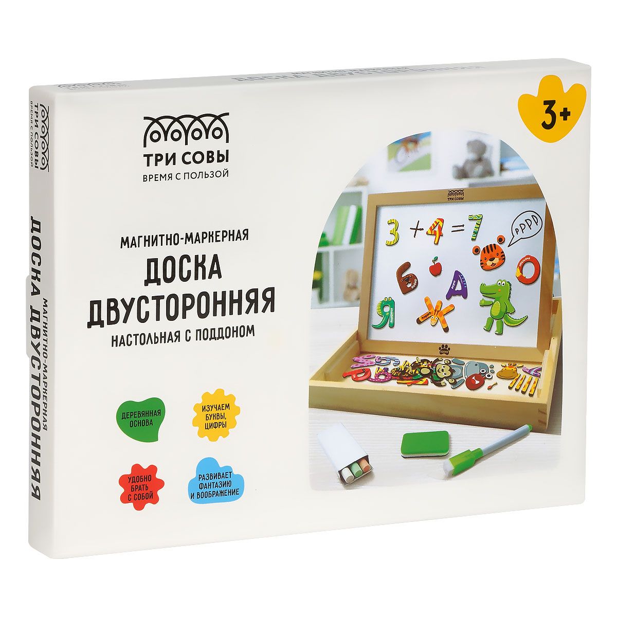 Доска двусторонняя магнитно-маркерная Три Совы, А3, настольная, с поддоном