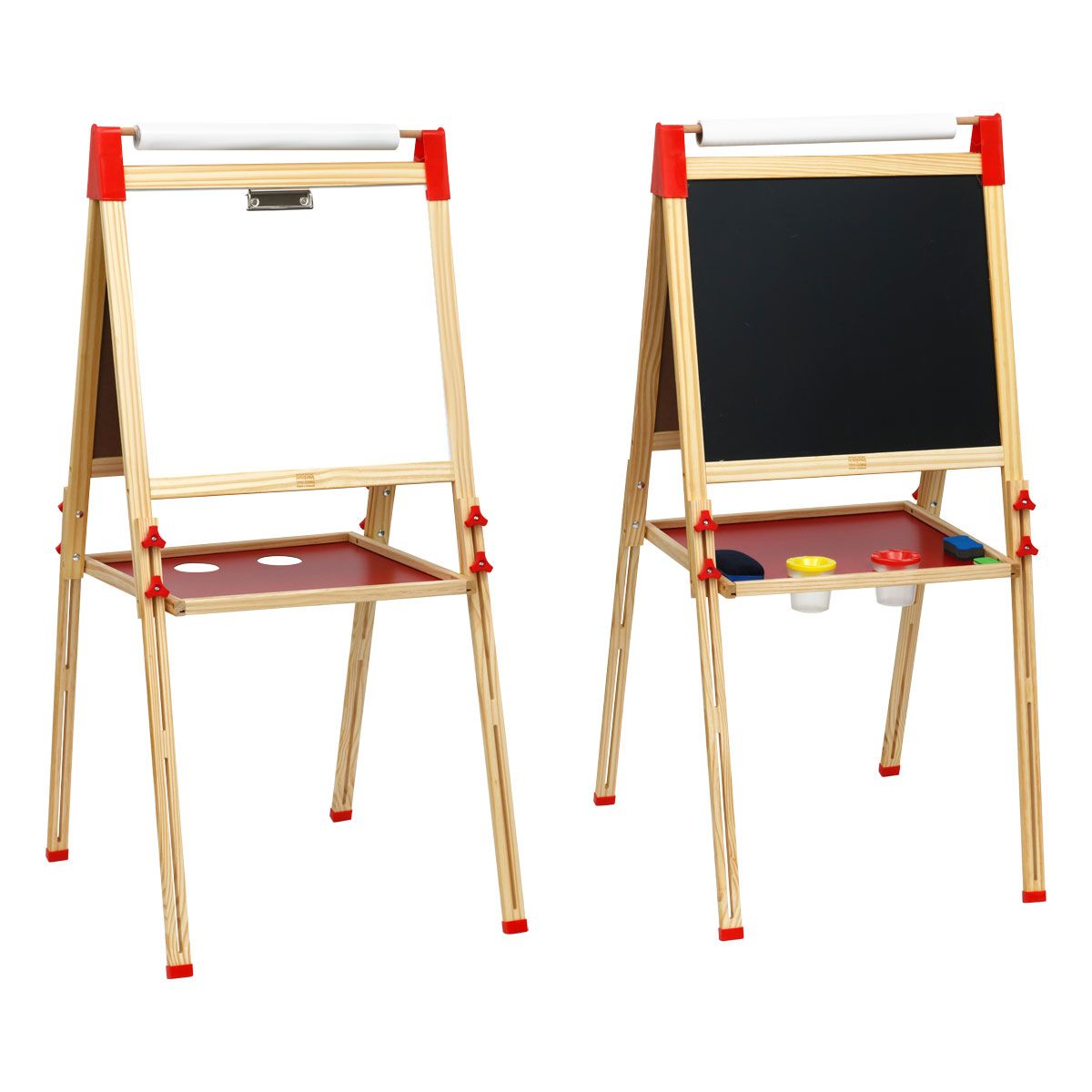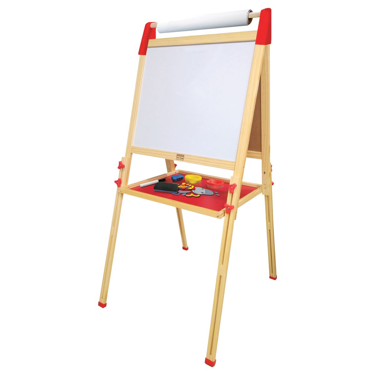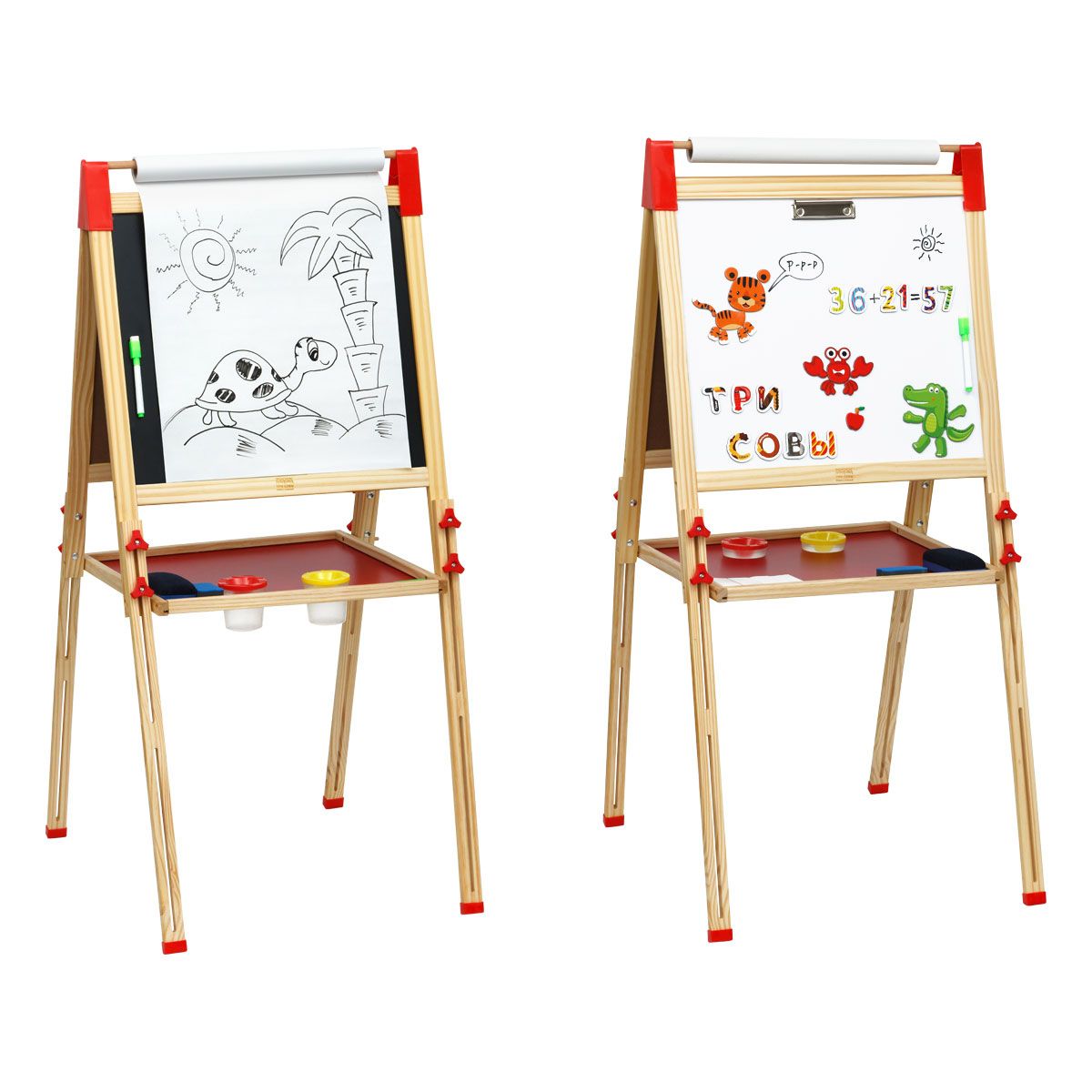УЦЕНКА - Доска-мольберт ТРИ СОВЫ, двусторонняя, меловая/магнитно-маркерная, напольная, растущая (маркер, мелки, губка, бумажный ролл, стаканы-непр., м