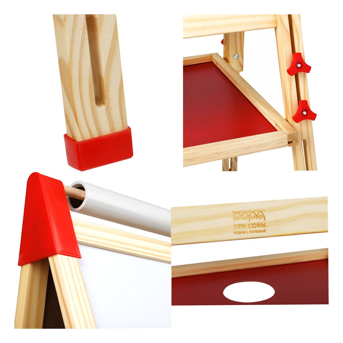 Двусторонняя доска-мольберт «ТРИ СОВЫ» – прекрасный инструмент для игры и творчества и настоящий подарок для любого ребёнка. Одна сторона доски имеет магнитное покрытие, на котором также можно рисовать маркером, вторая сторона предназначена для рисования мелом. Сверху закреплен рулон бумаги, на которой можно рисовать карандашами, фломастерами, красками, восковыми мелками. Доска-мольберт «ТРИ СОВЫ» даст ребёнку возможность почувствовать себя настоящим художником, поможет развивать мелкую моторику, логическое мышление, воображение и творческие способности, сделает процесс рисования комфортным и увлекательным.