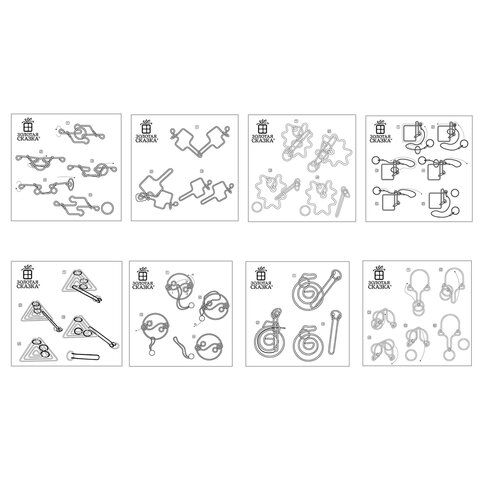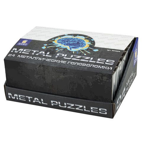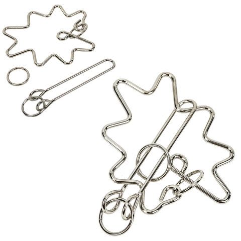 Головоломка металлическая большая ЗОЛОТАЯ СКАЗКА, 24 вида, в дисплее, разные уровни сложности, 664924