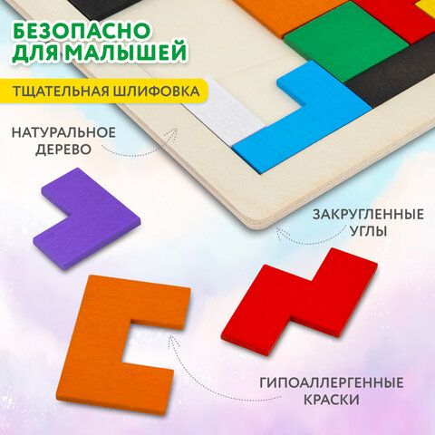 Головоломка развивающая деревянная "Тетрис", цветной, 18х27 см., BRAUBERG KIDS, 665262