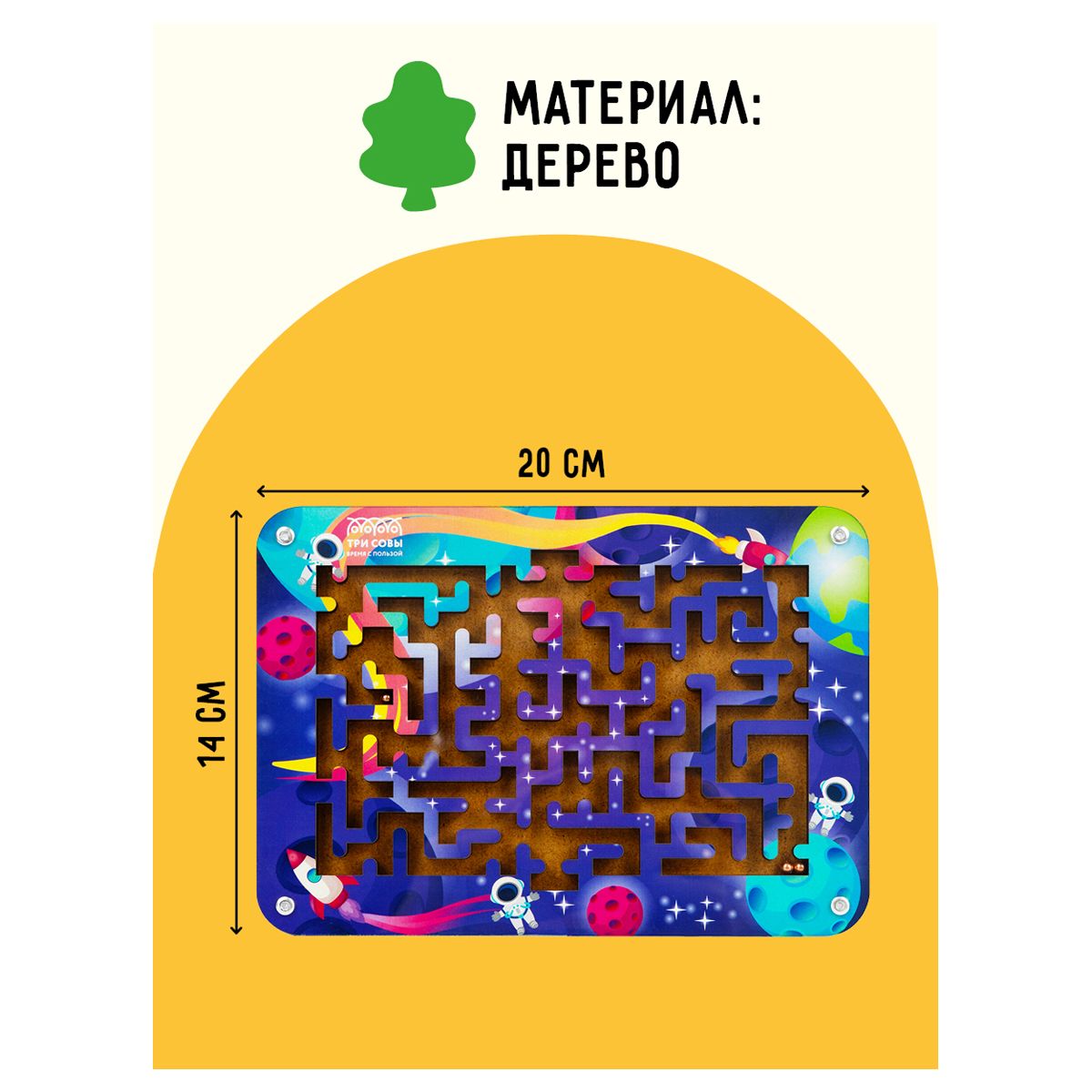 Настольная игра ТРИ СОВЫ "Лабиринт малый с шариками. Галактика", дерево