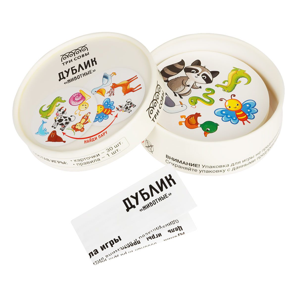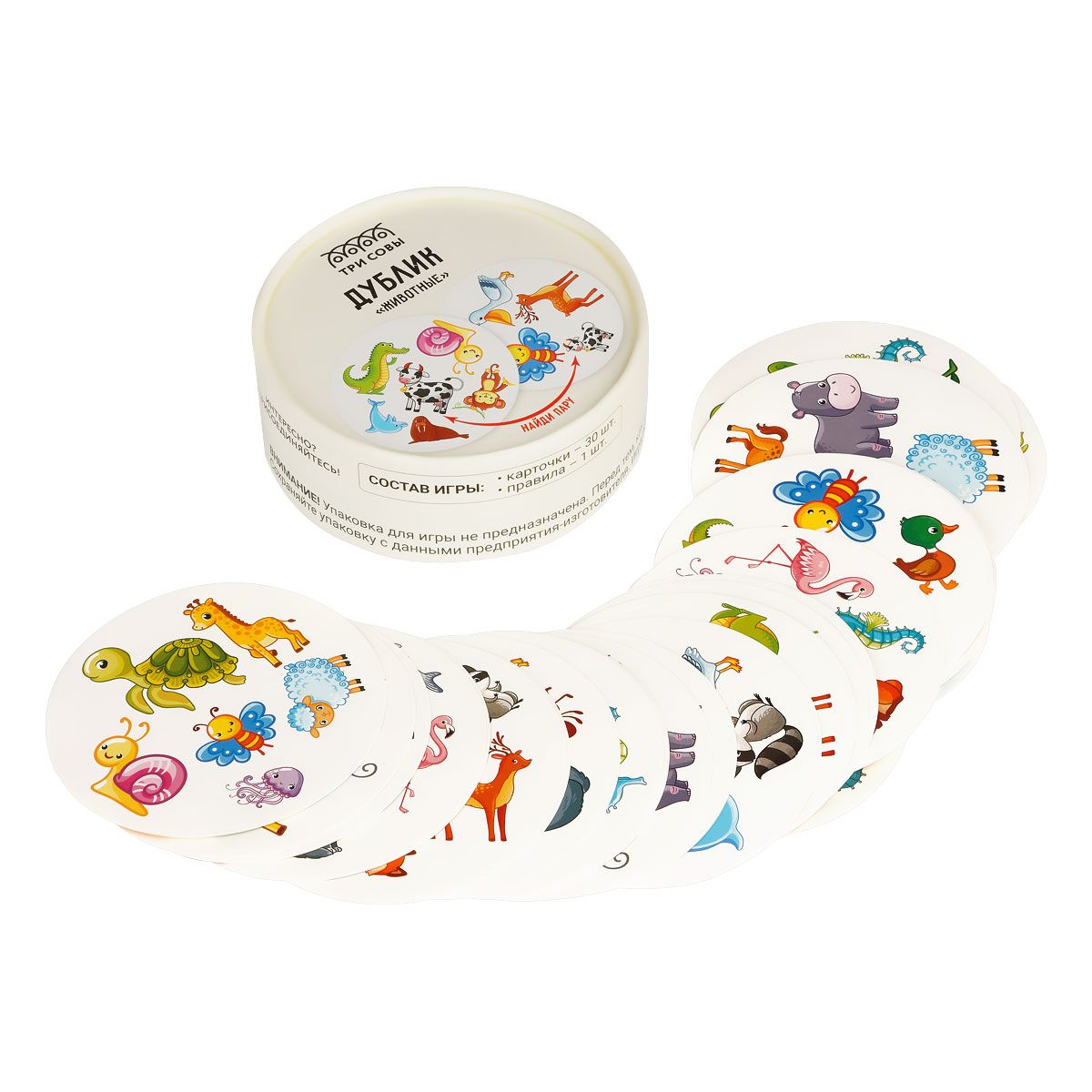 Игра настольная ТРИ СОВЫ "Дублик. Животные", 30 карточек, картонная коробка