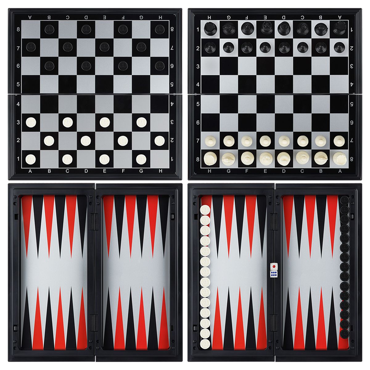 Набор игр представлен в уменьшенном виде, что удобно взять её с собой в дорогу. Размер игрового поля 24*24 см.