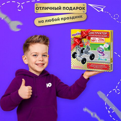 Конструктор металлический ЮНЛАНДИЯ "Для уроков труда №1", развивающий, 206 элементов, 104679