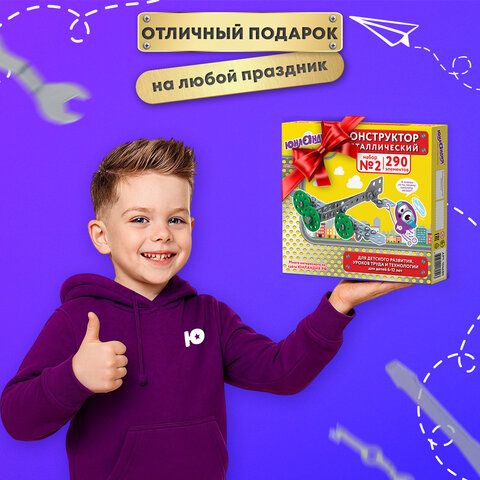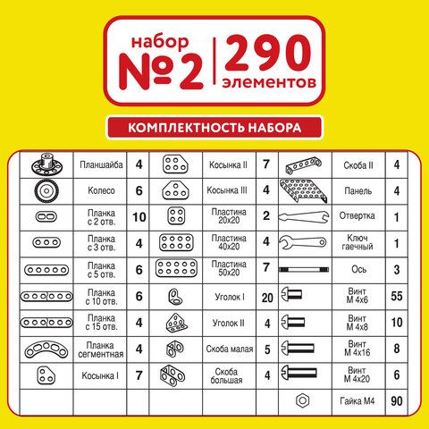 Конструктор металлический ЮНЛАНДИЯ "Для уроков труда №2", развивающий, 290 элементов, 104680
