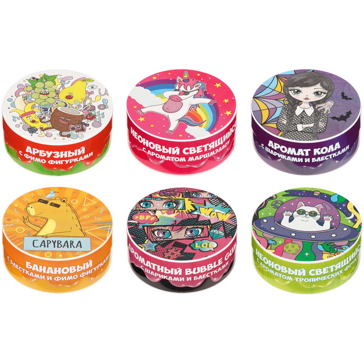 Набор слаймов макси ТРИ СОВЫ Slime boom "Трендовый микс", 250мл, 6шт., 6 видов с наполнителями, картонный шоу-бокс