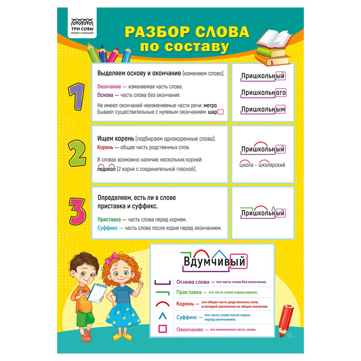 Наглядное пособие помогает упорядочить полученные знания и закладывает базу для дальнейшего обучения. Плакаты «ТРИ СОВЫ» можно использовать дома и в начальной школе.