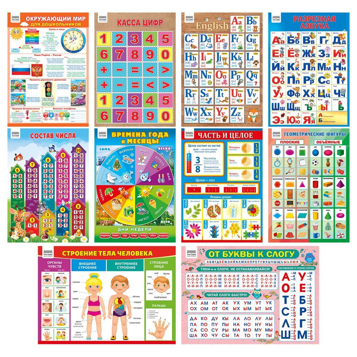 Набор обучающих плакатов ТРИ СОВЫ "Скоро в школу", А4, 10 плакатов