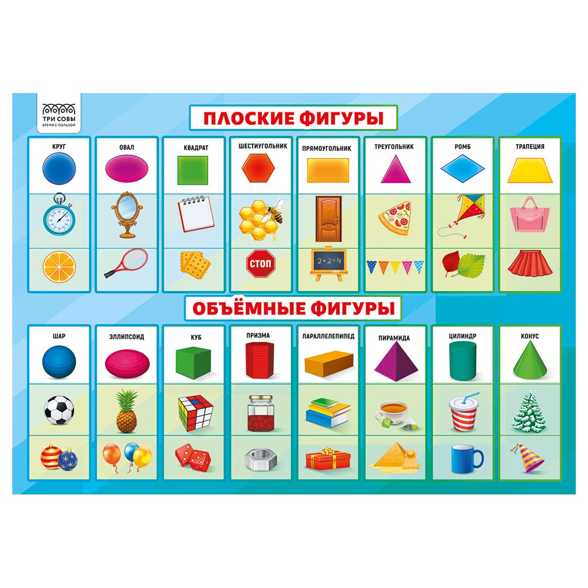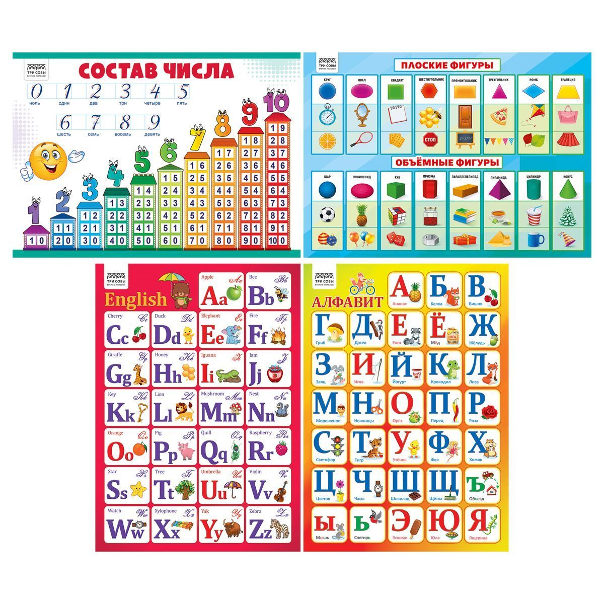 Наглядное пособие помогает упорядочить полученные знания и закладывает базу для дальнейшего обучения. Плакаты «ТРИ СОВЫ» можно использовать дома, в начальной школе или детском саду.