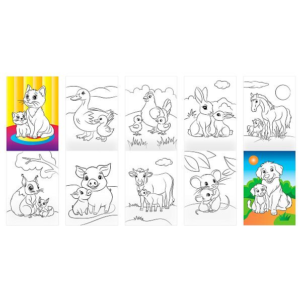 • Классические бумажные раскраски — простые и понятные сюжеты для малышей.