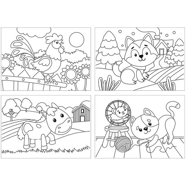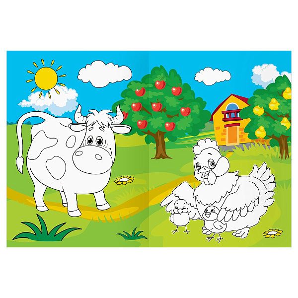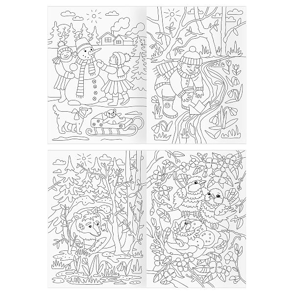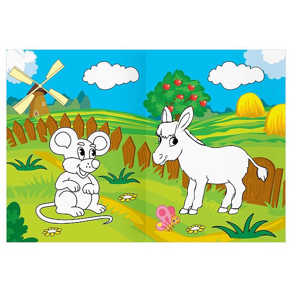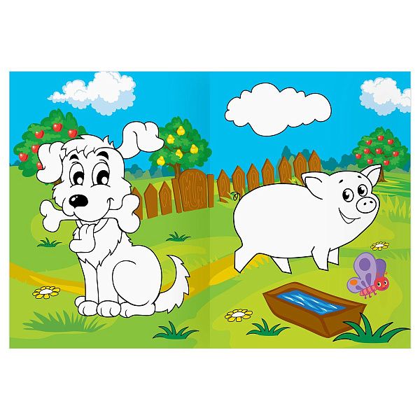 • Классические бумажные раскраски — простые и понятные сюжеты для малышей.