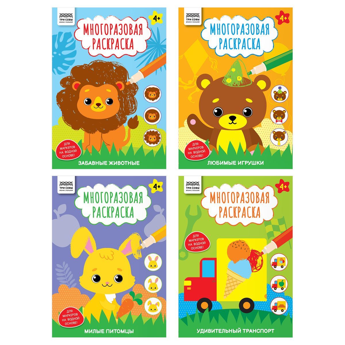 Многоразовая раскраска А4, 16 стр., ТРИ СОВЫ "Пиши-стирай"