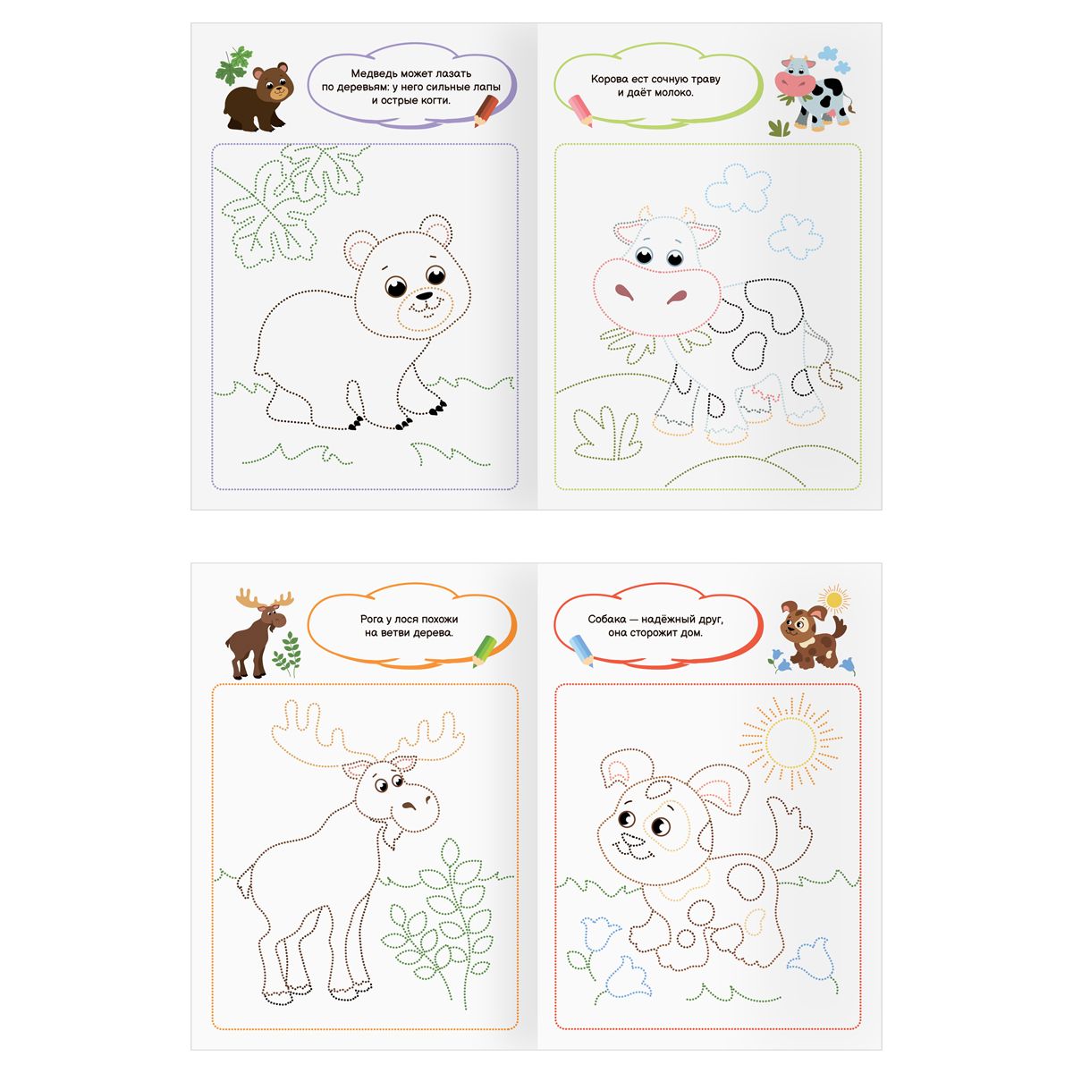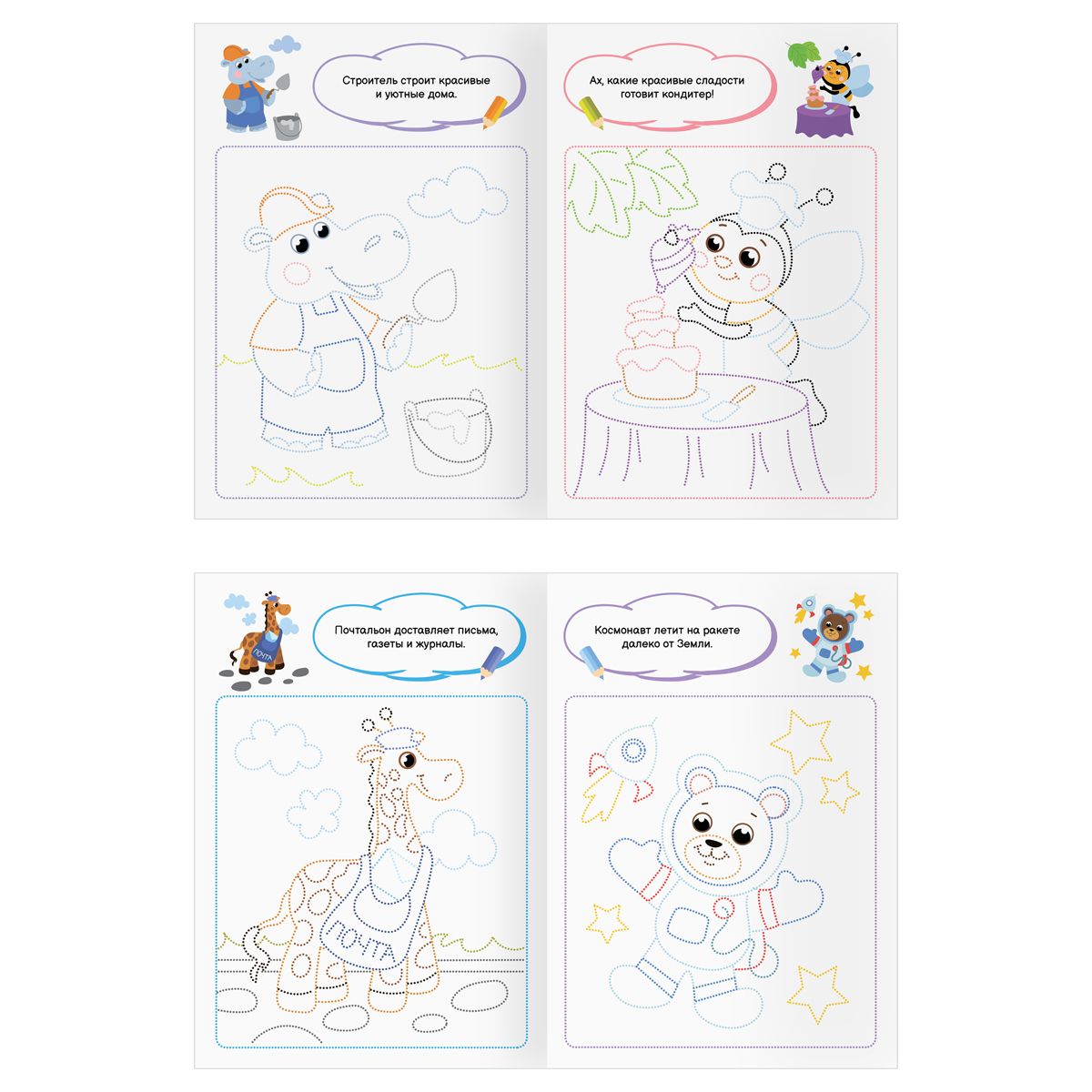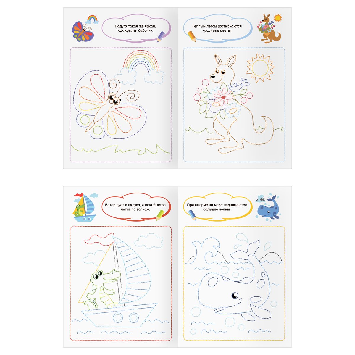 При раскрашивании ребёнок развивает мелкую моторику и цветовосприятие, фантазию и воображение. Раскраски помогают сформировать такие качества, как усидчивость и аккуратность. В запаянной упаковке находятся четыре разные раскраски.
