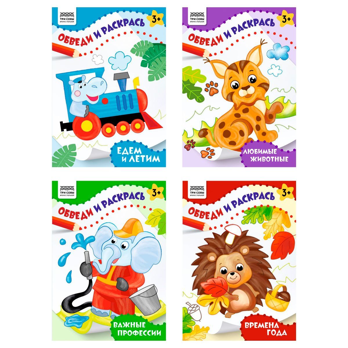 Раскраска 175*246мм, 16 стр., ТРИ СОВЫ "Обведи и раскрась", цветной контур