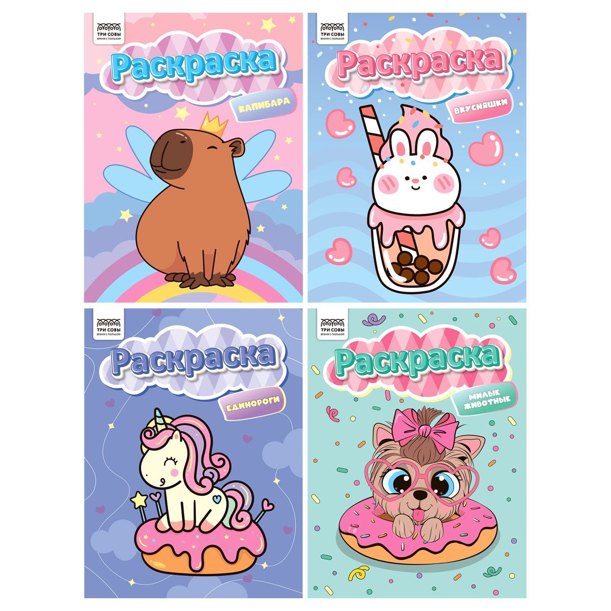 Раскраска А4, 8 стр. ТРИ СОВЫ "Раскраски для девочек"