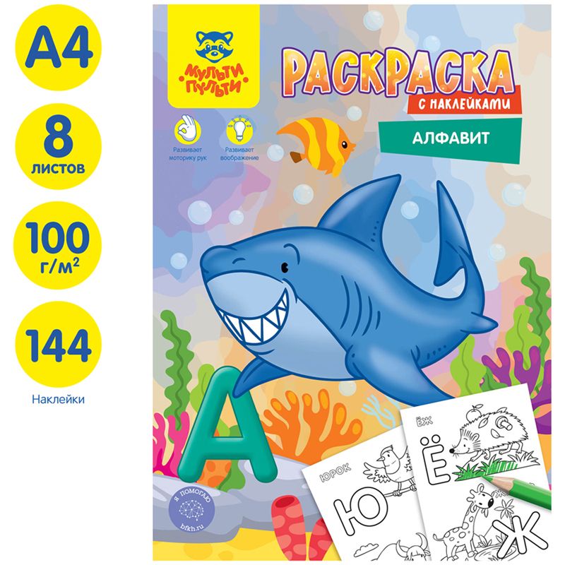 Раскраска А4 Мульти-Пульти "Алфавит", 16стр., с наклейками