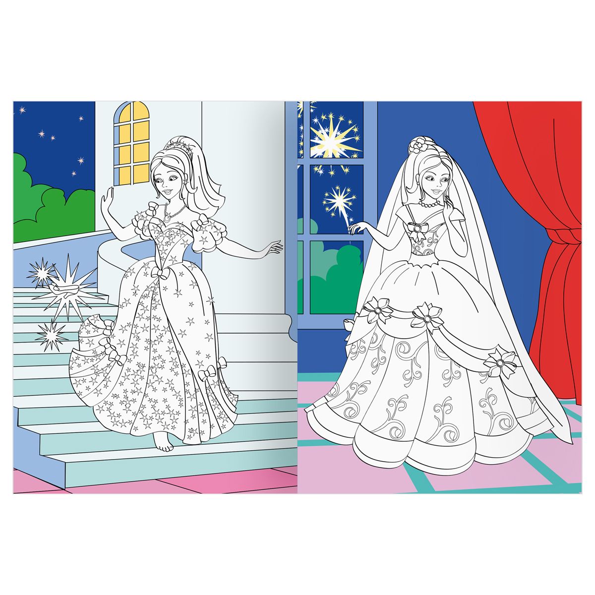 Раскраска А4 ТРИ СОВЫ "Бал принцесс", 16стр., цветной фон