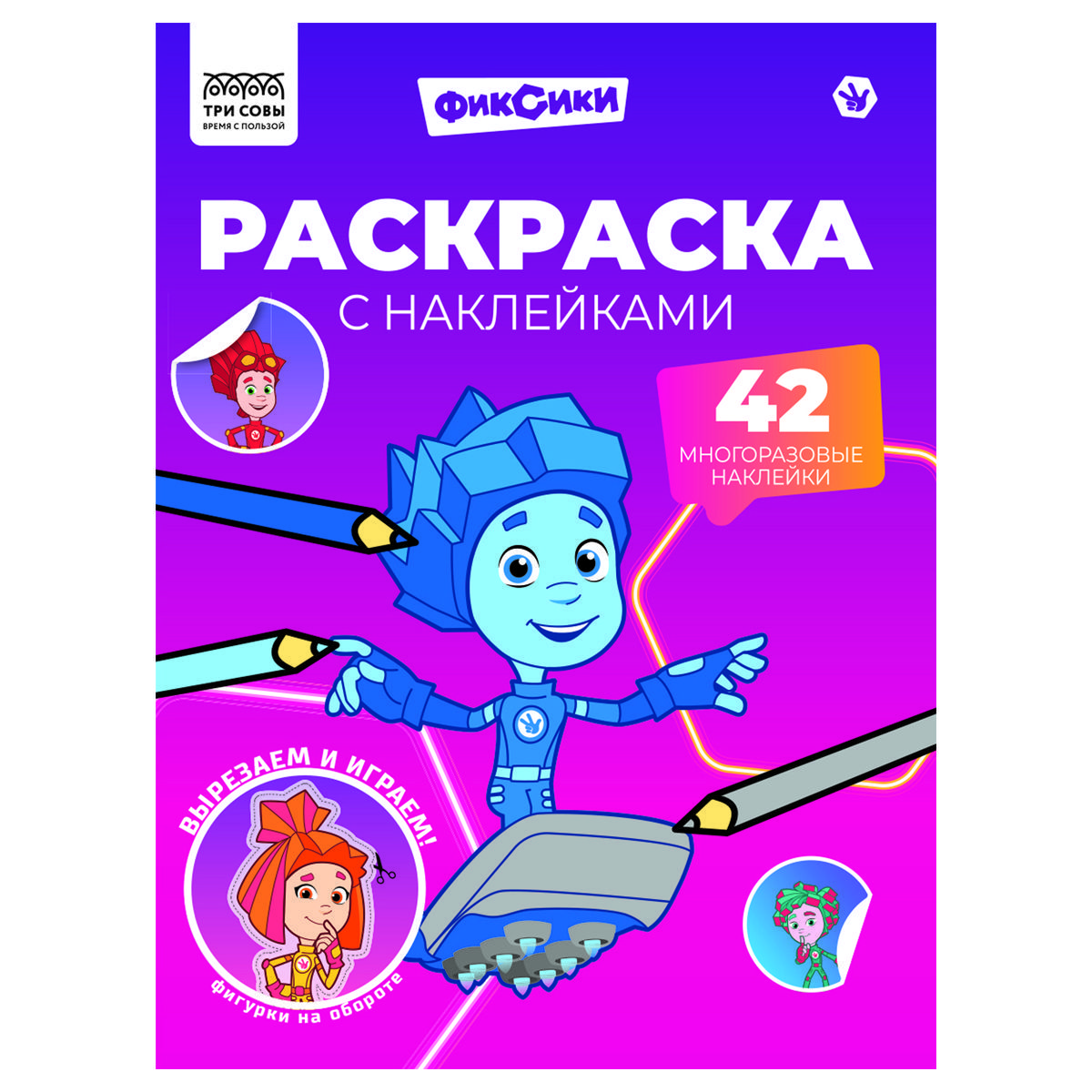 Раскраска, А4 ТРИ СОВЫ "Фиксики", 8стр., с наклейками