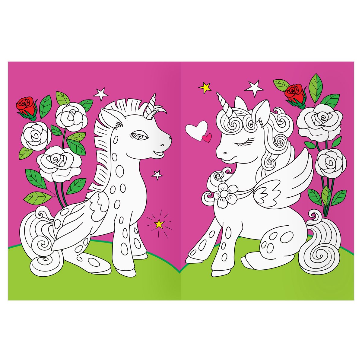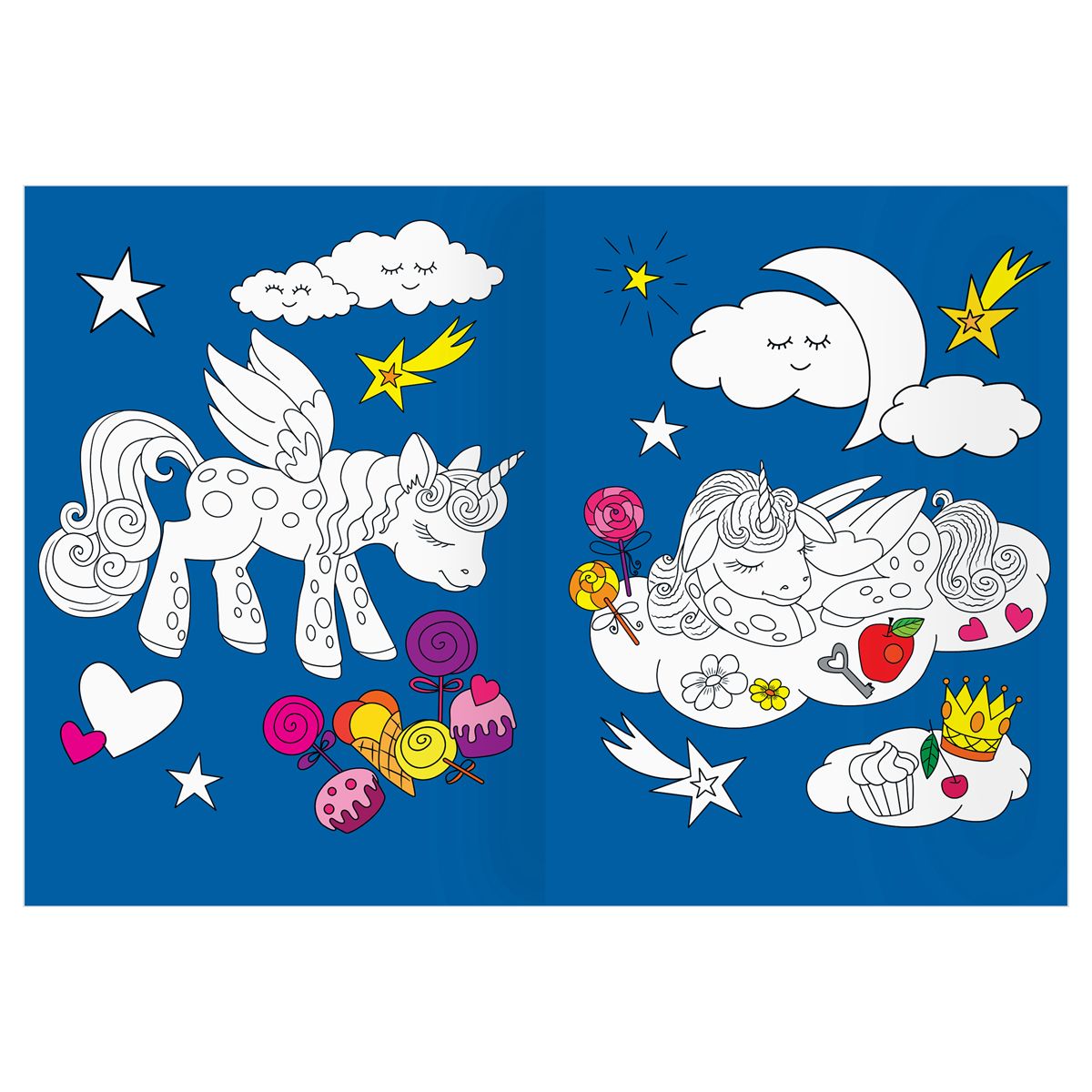 Раскраска А4 ТРИ СОВЫ "Страна единорожек", 16стр., цветной фон