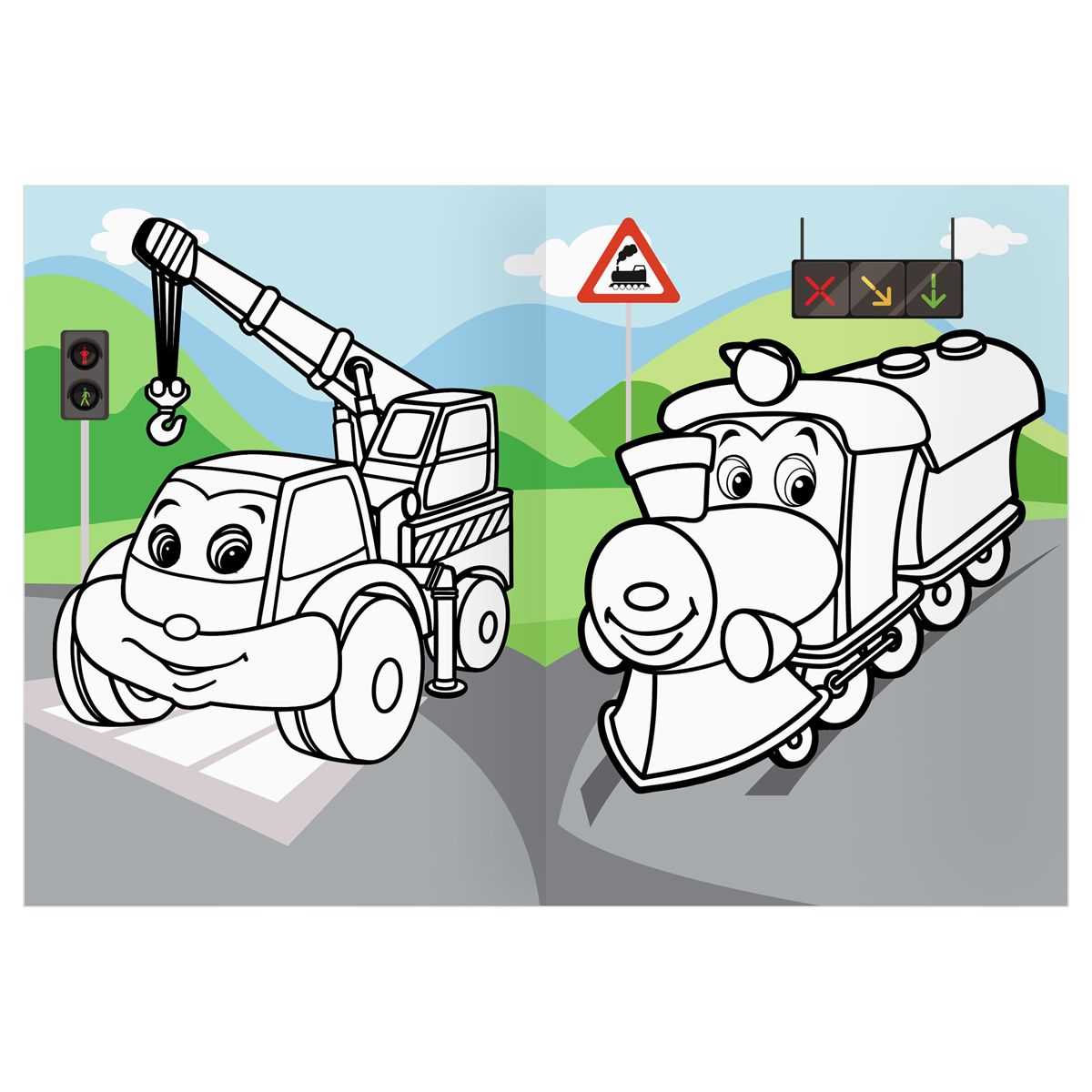 Раскраска А4 ТРИ СОВЫ "Транспорт", 16стр., цветной фон