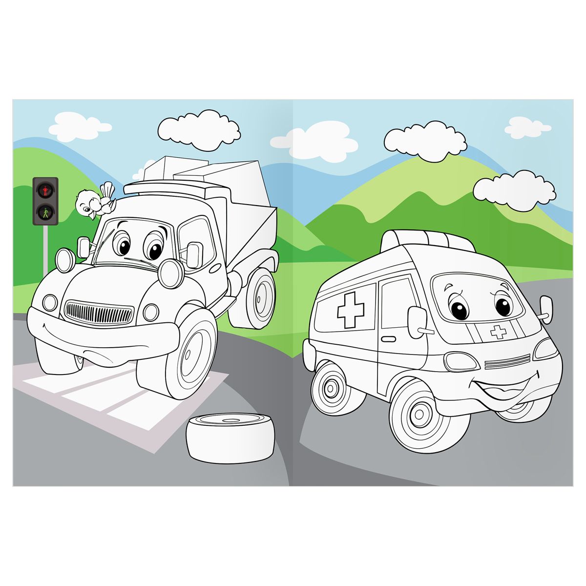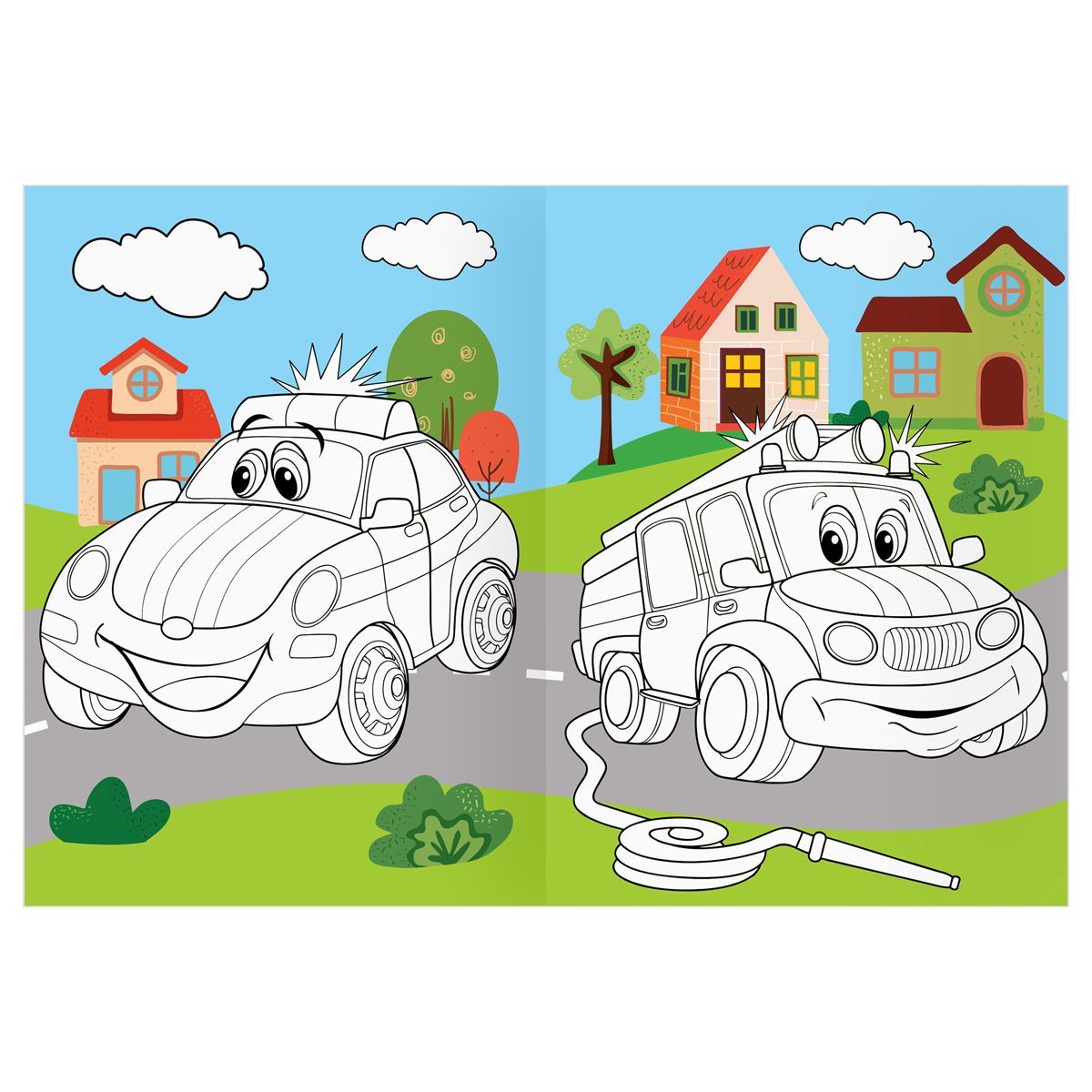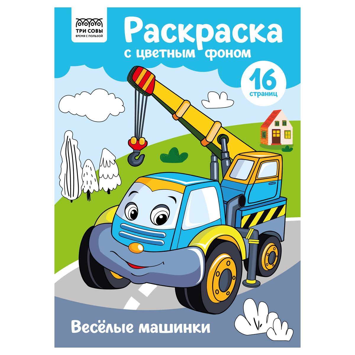 Раскраска А4 ТРИ СОВЫ "Веселые машинки", 16стр., цветной фон