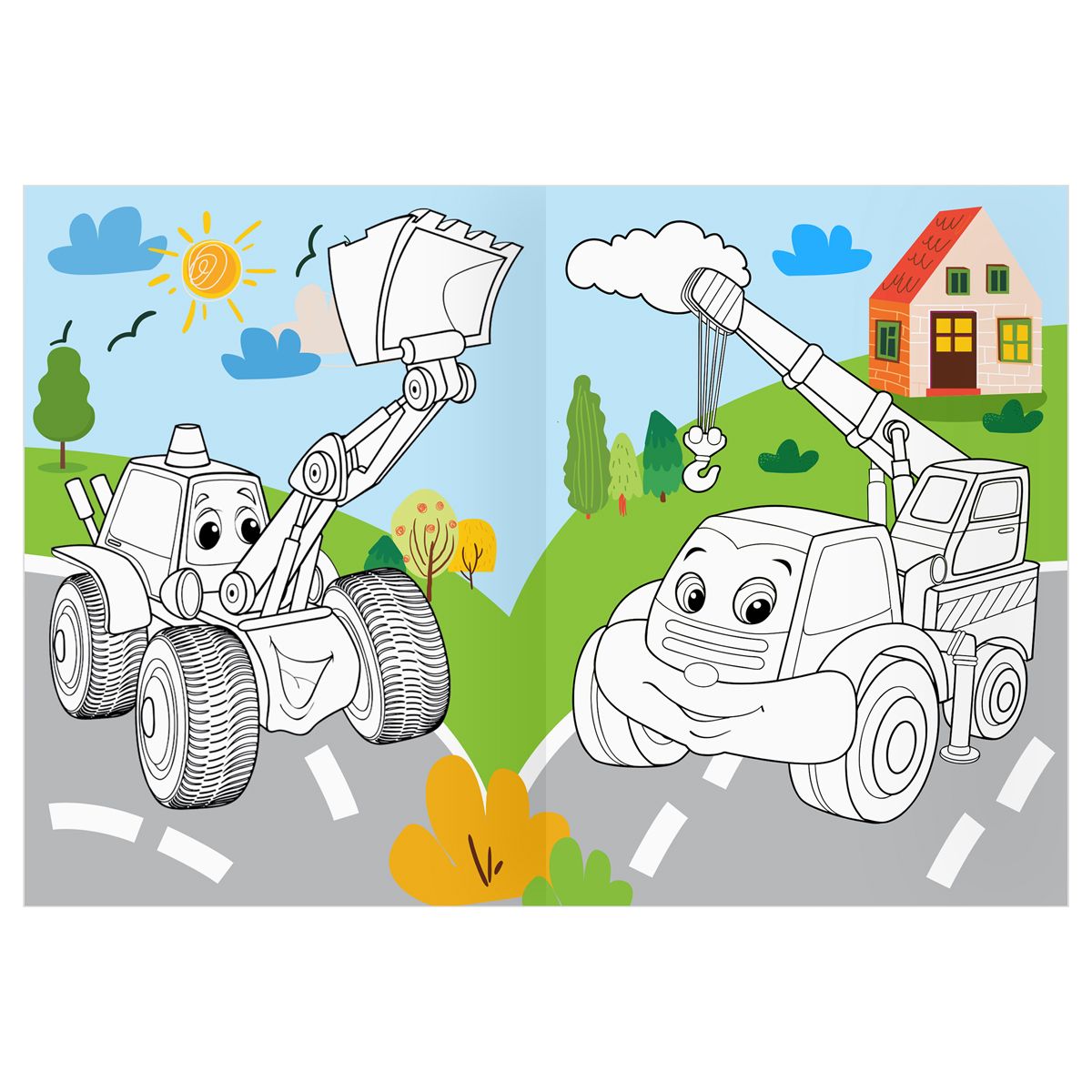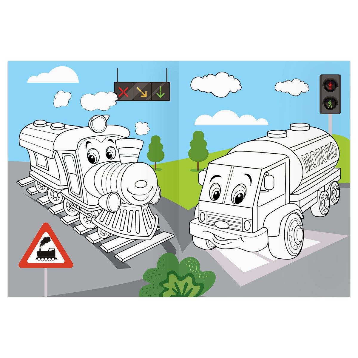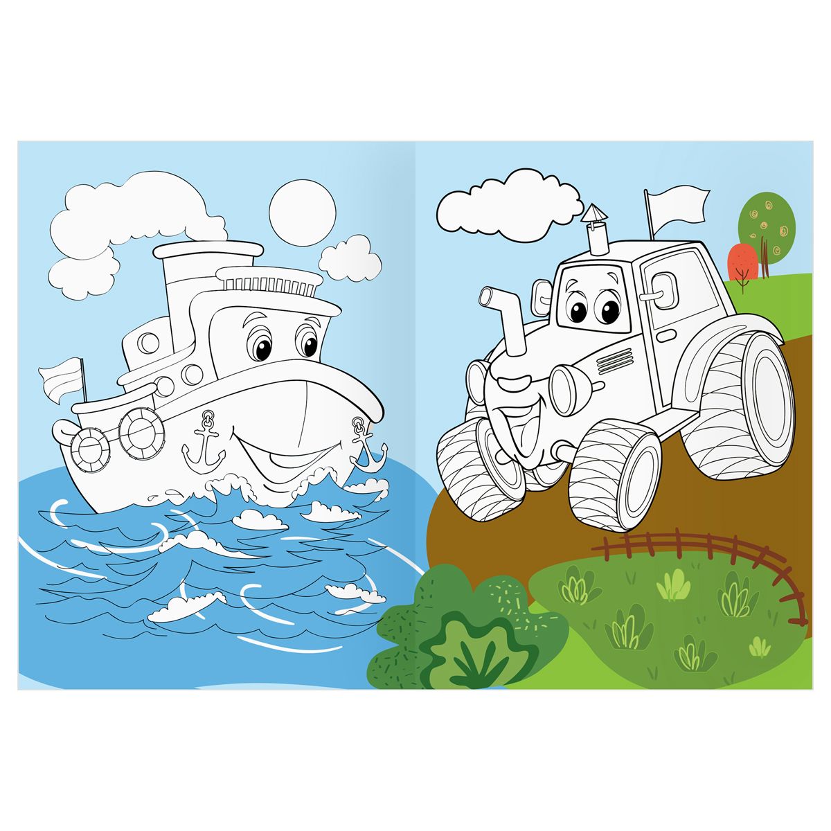 Раскраска А4 ТРИ СОВЫ "Веселые машинки", 16стр., цветной фон