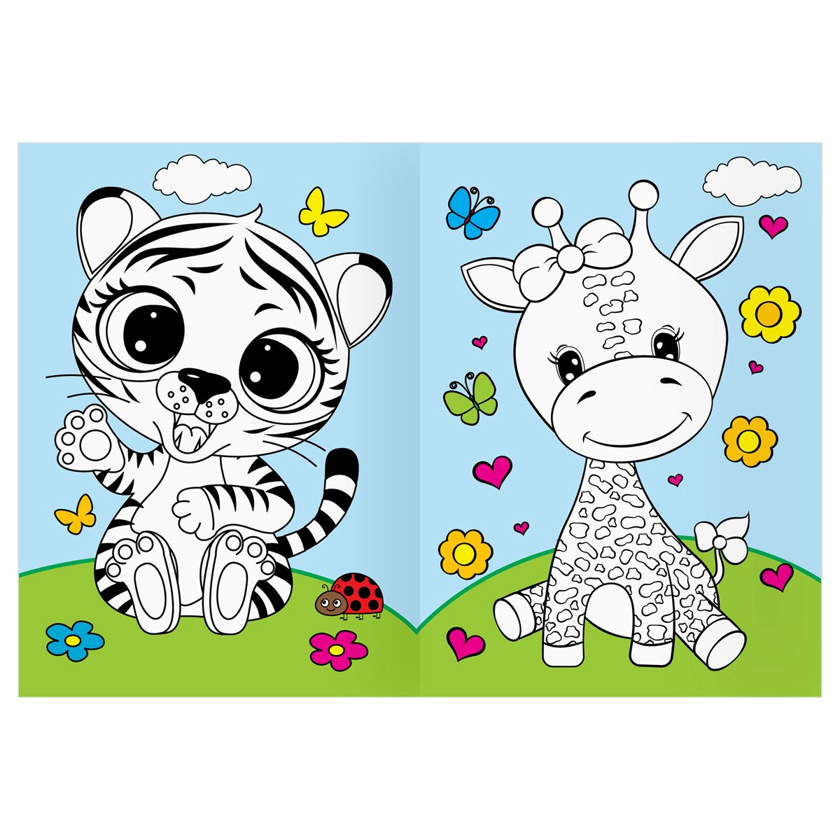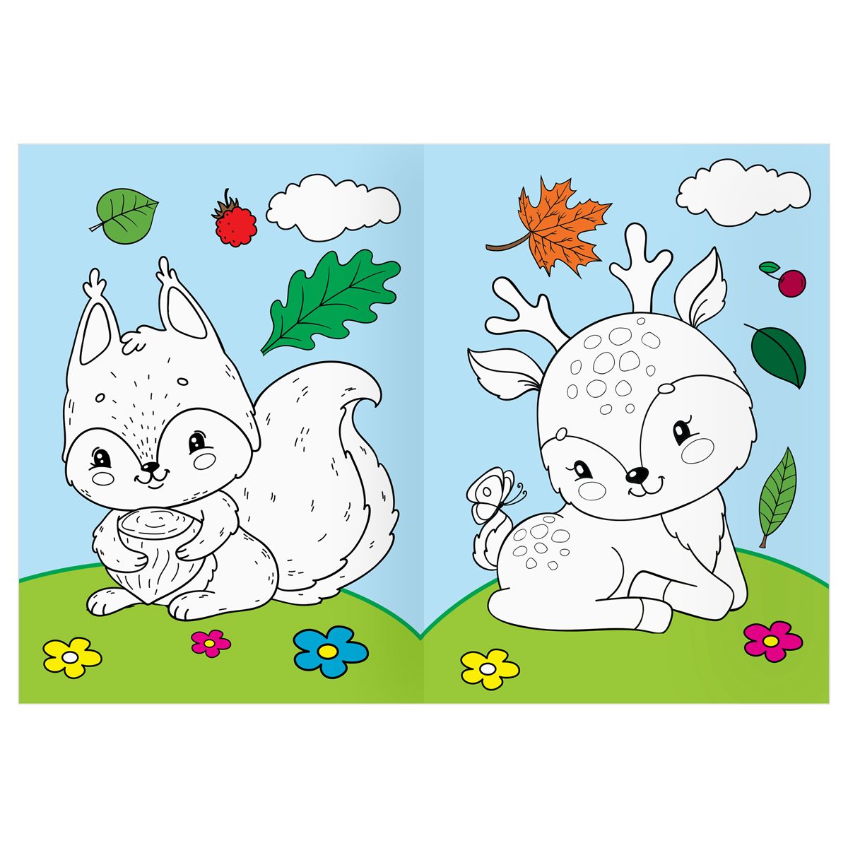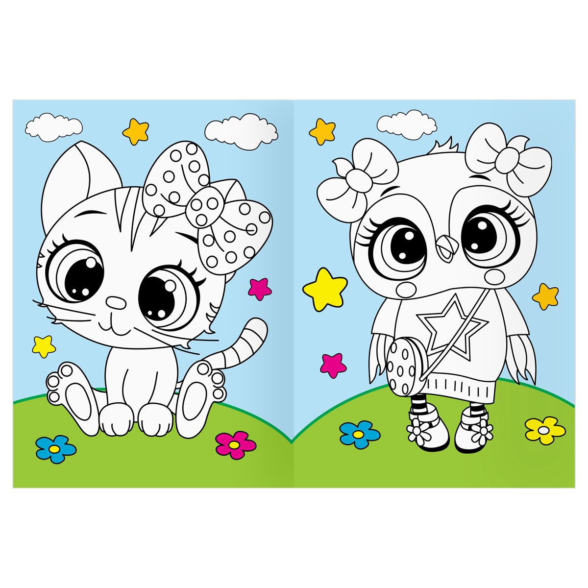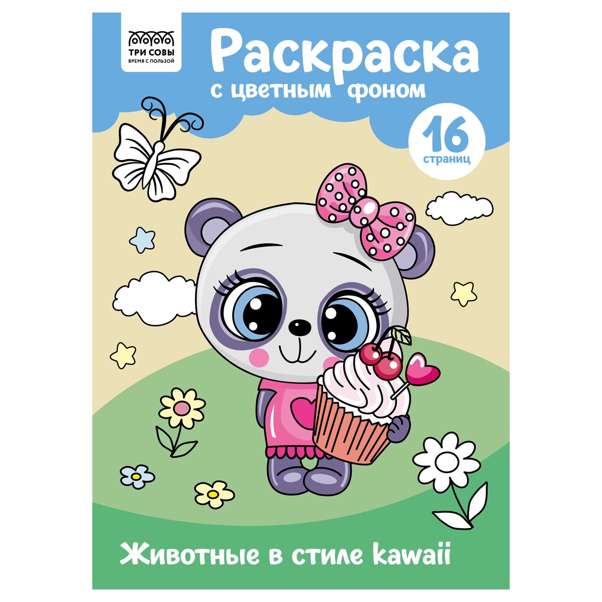 Раскраска А4 ТРИ СОВЫ "Животные в стиле kawaii", 16стр., цветной фон